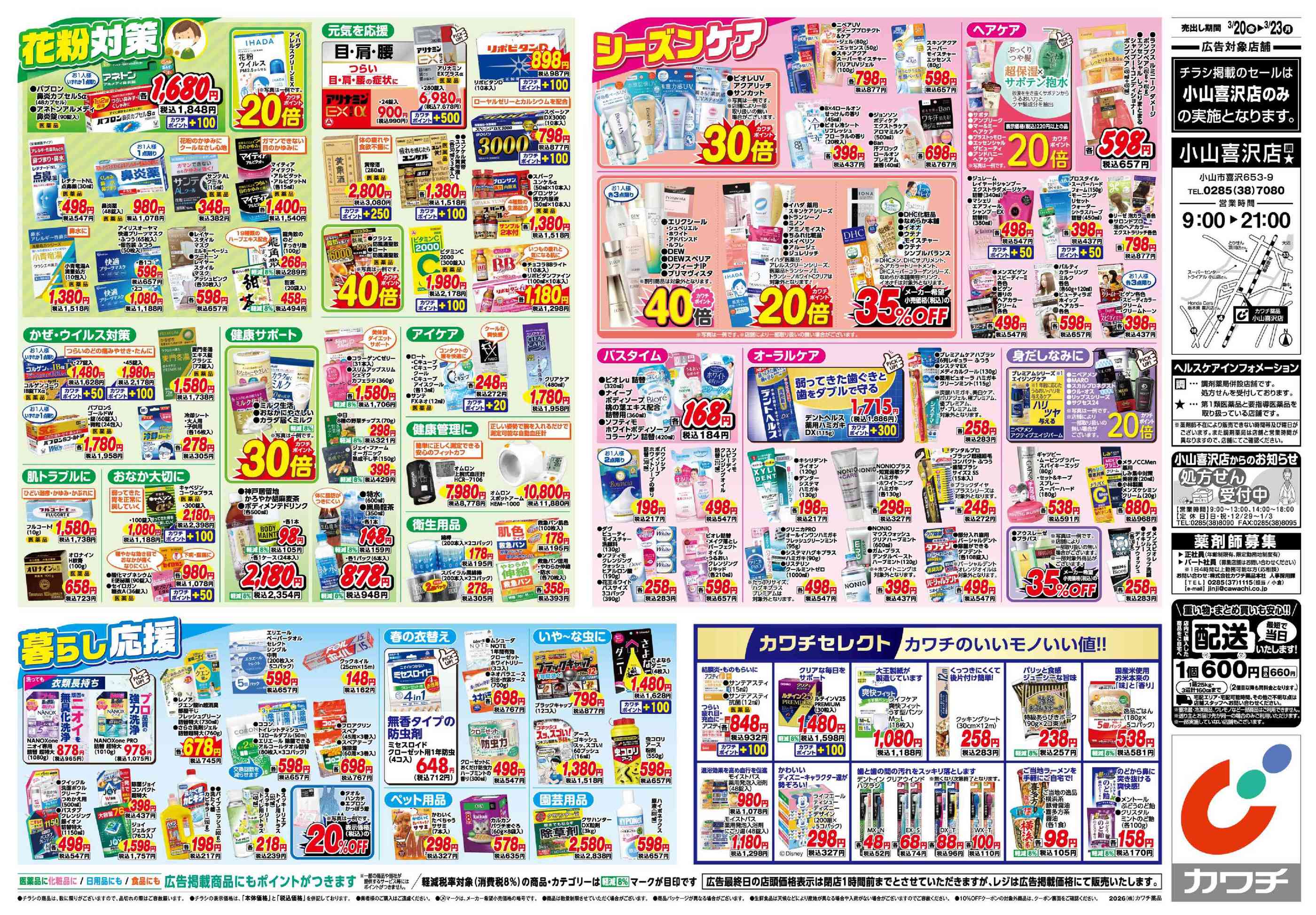 カワチ薬品小山喜沢店今週のチラシ(2026年3月30日〜4月5日)