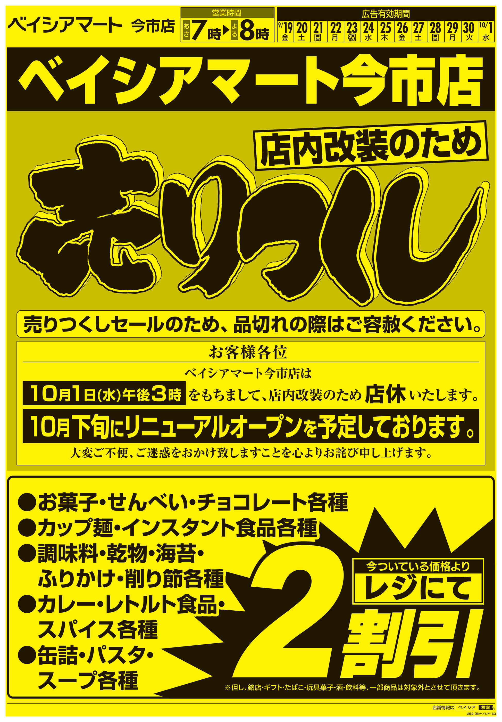 ベイシアマート今市店2025-09-19更新