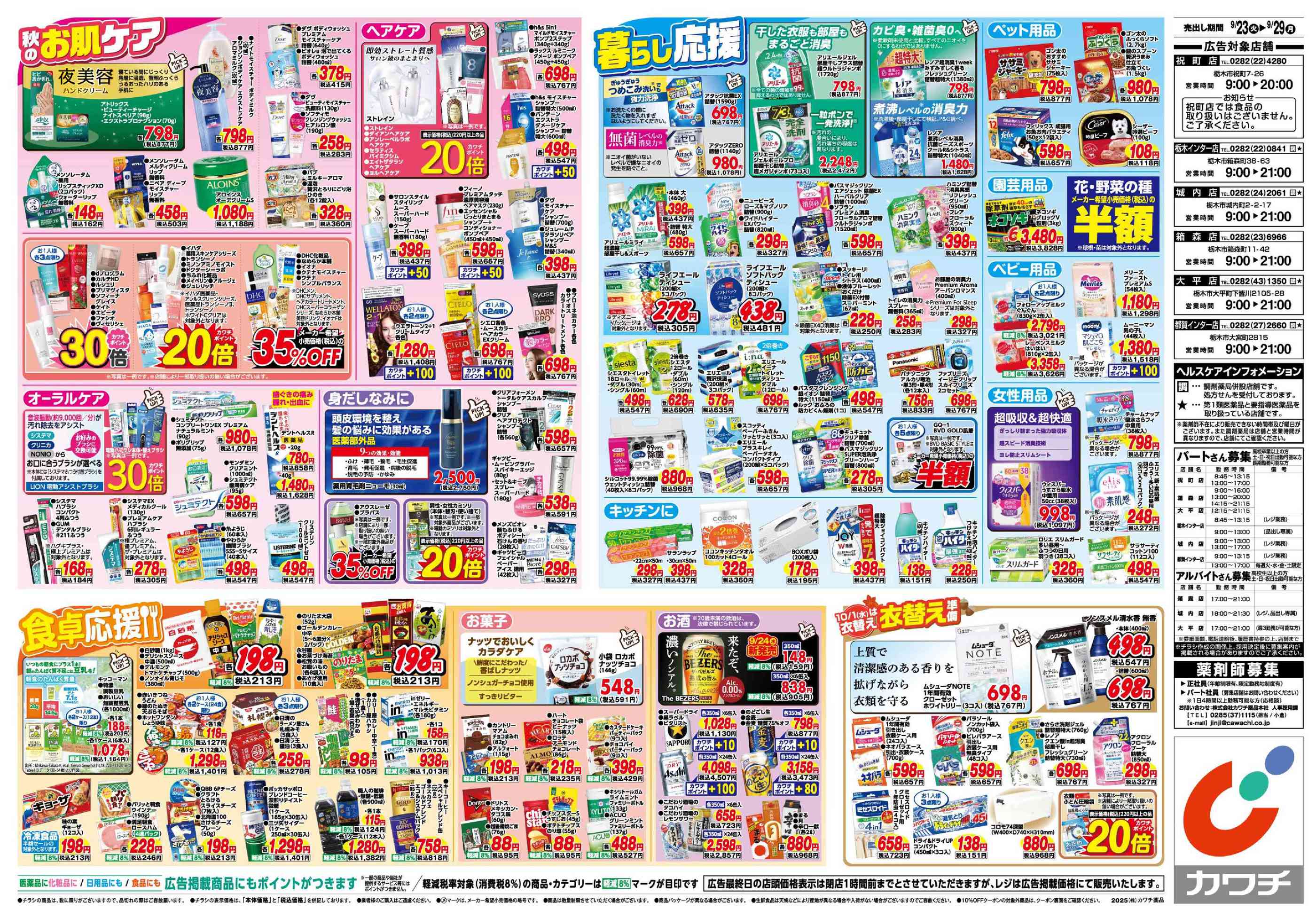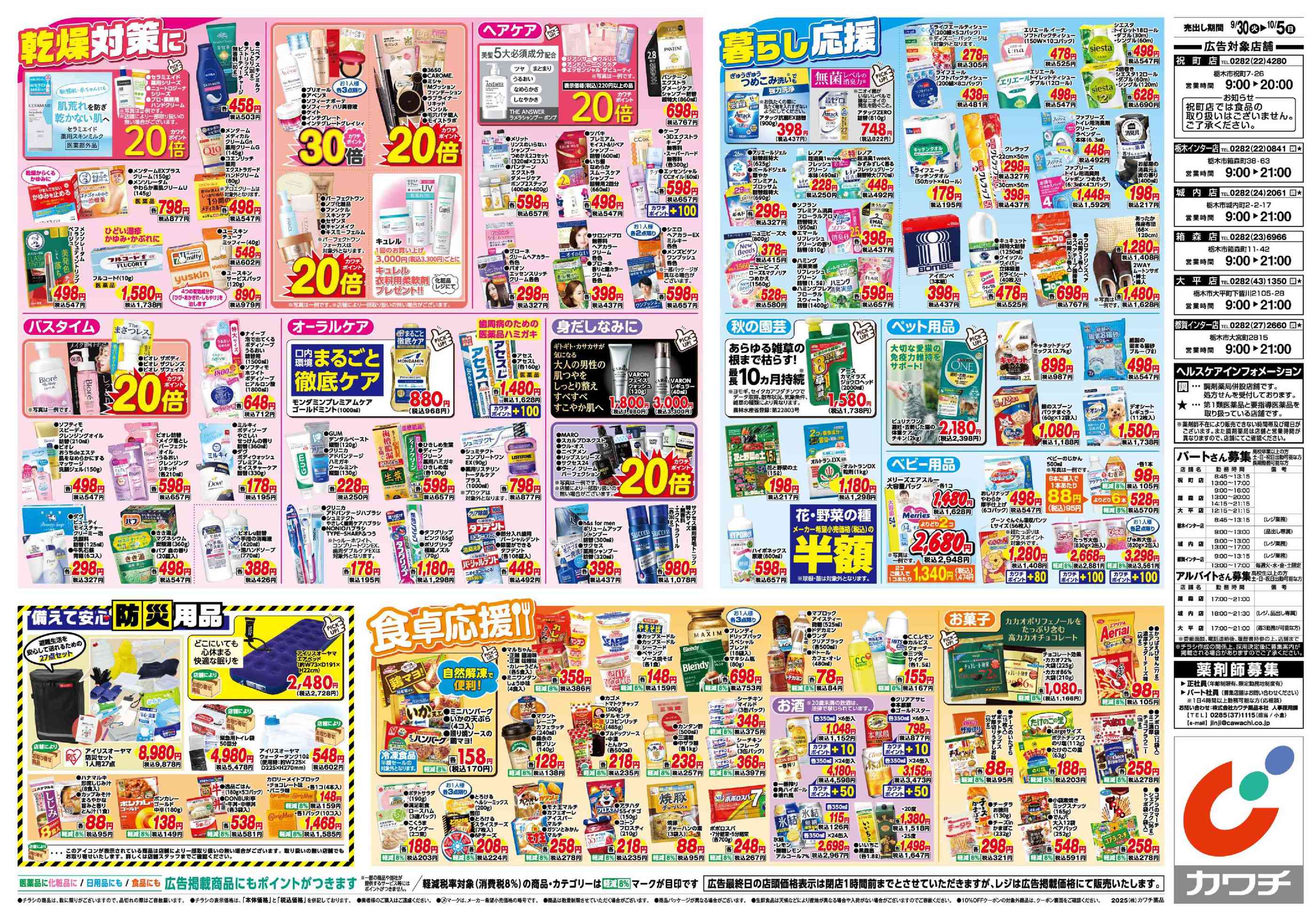 カワチ薬品大平店今週のチラシ(2025年9月29日〜10月5日)