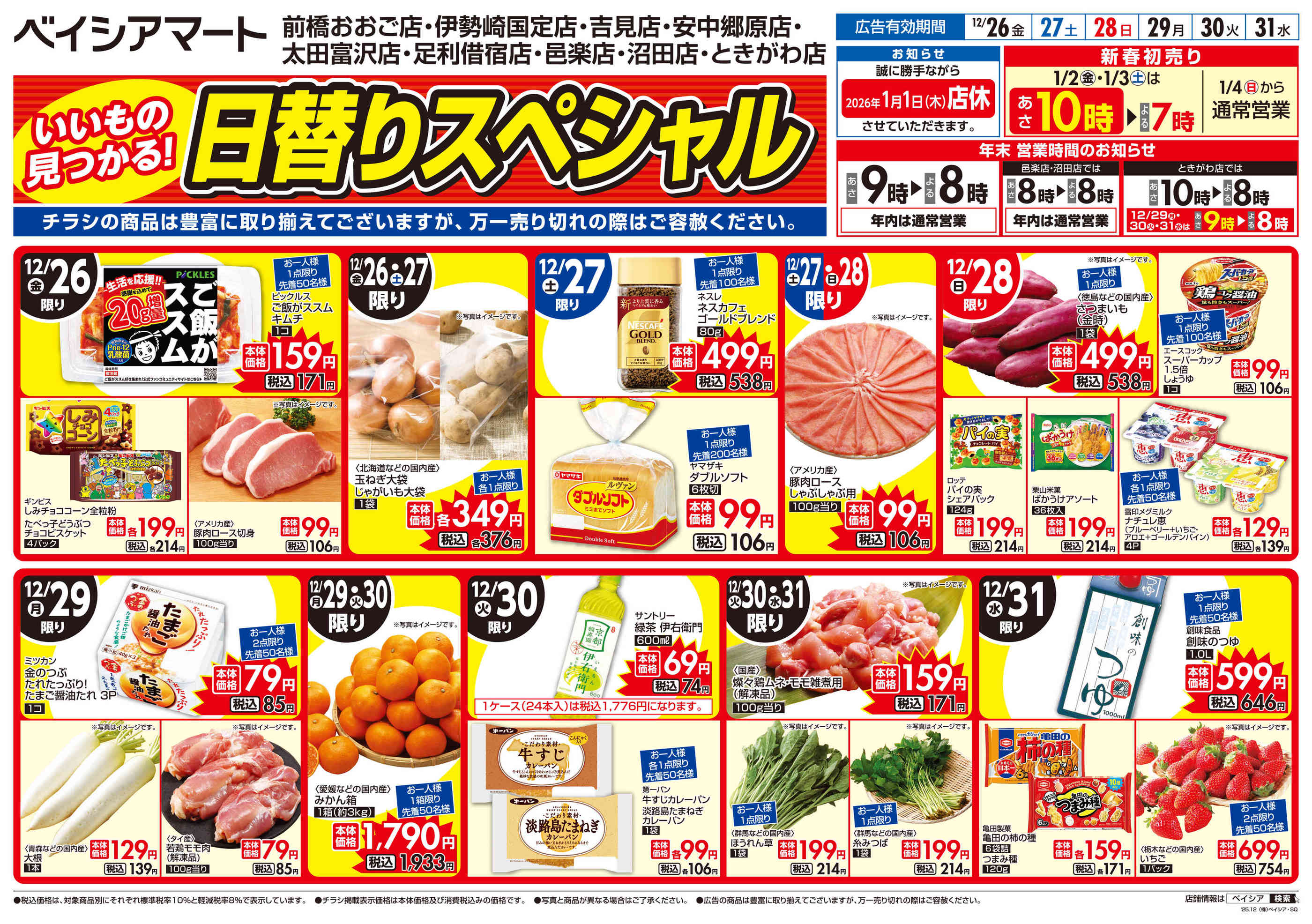 ベイシアマート足利借宿店今週のチラシ(2025年12月22日〜12月28日)