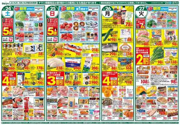 特売やセール情報など最新のチラシを掲載中。(1種類、4枚のチラシを掲載しています)