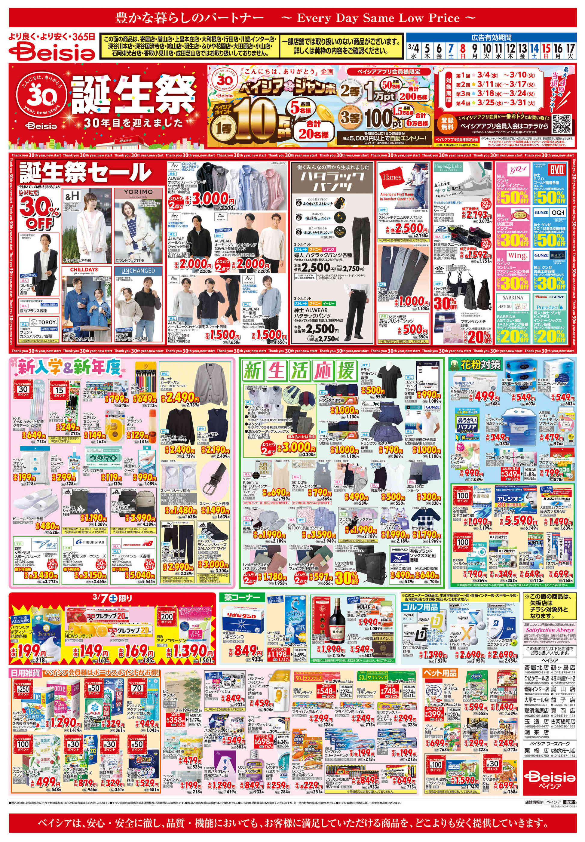 ベイシア烏山店今週のチラシ(2026年3月9日〜3月15日)