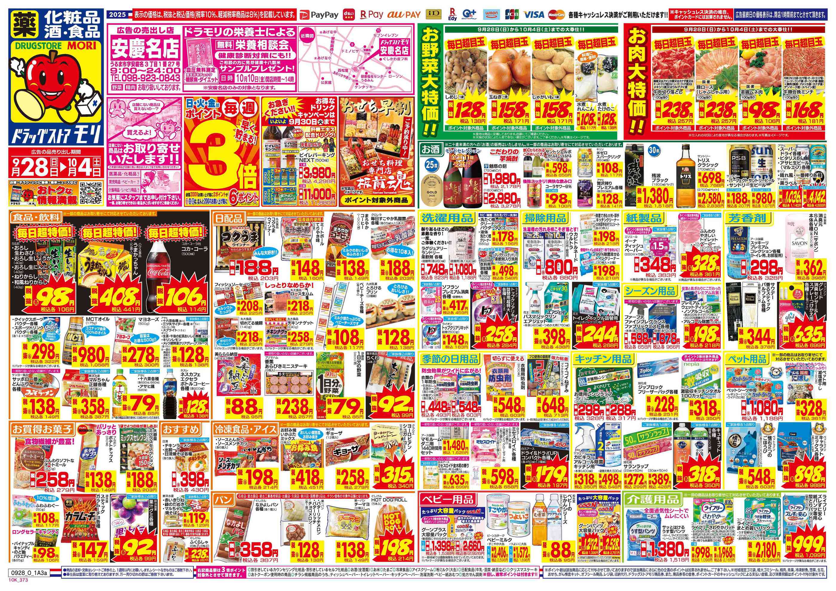 ドラッグストアモリ安慶名店今週のチラシ(2025年9月29日〜10月5日)