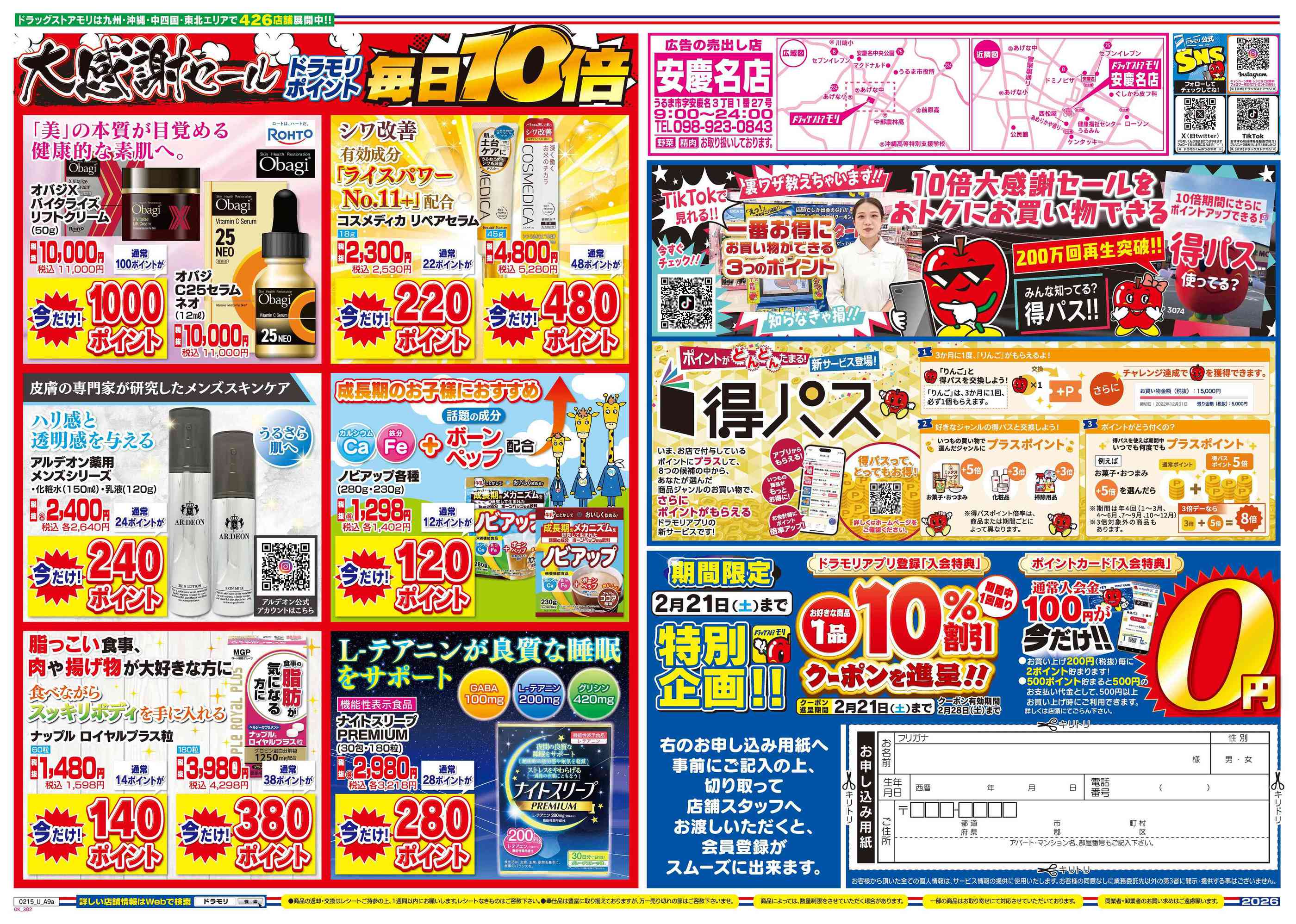 ドラッグストアモリ安慶名店今週のチラシ(2026年2月16日〜2月22日)