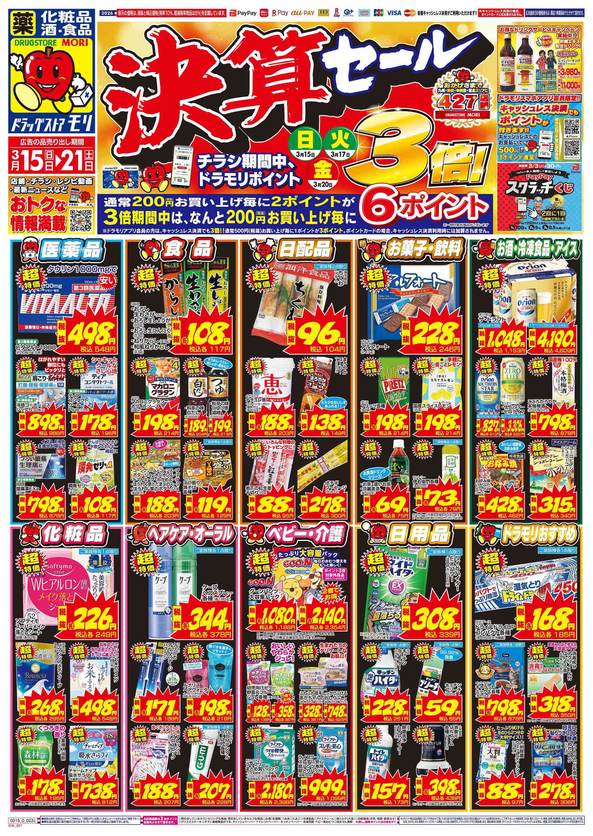 ドラッグストアモリ宮古工業高校前店今週のチラシ(2026年3月16日〜3月22日)