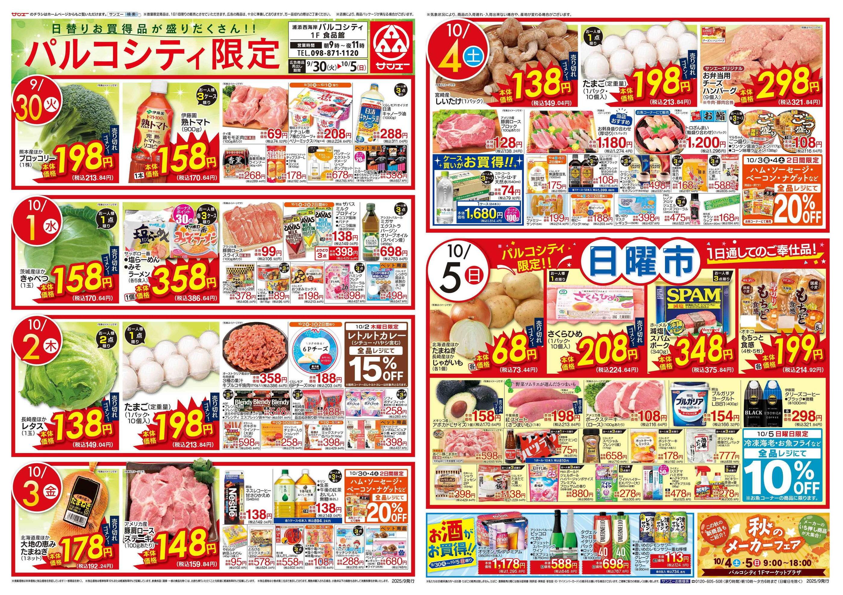 サンエー浦添西海岸パルコシティ今週のチラシ(2025年9月29日〜10月5日)