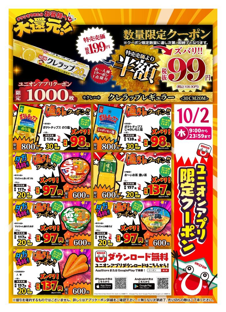 ユニオン豊見城店今週のチラシ(2025年9月29日〜10月5日)