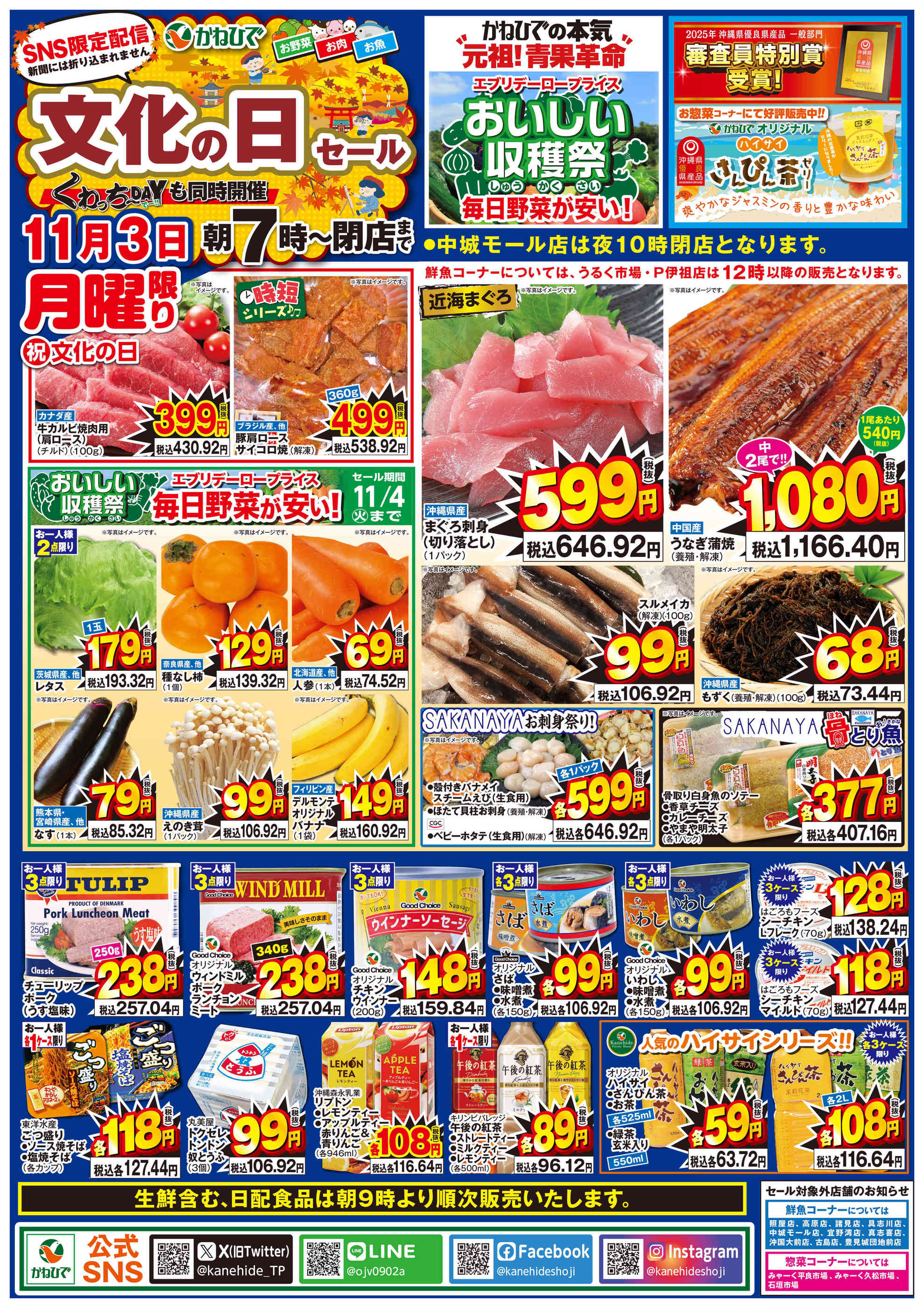 タウンプラザかねひであけぼの店今週のチラシ(2025年11月3日〜11月9日)