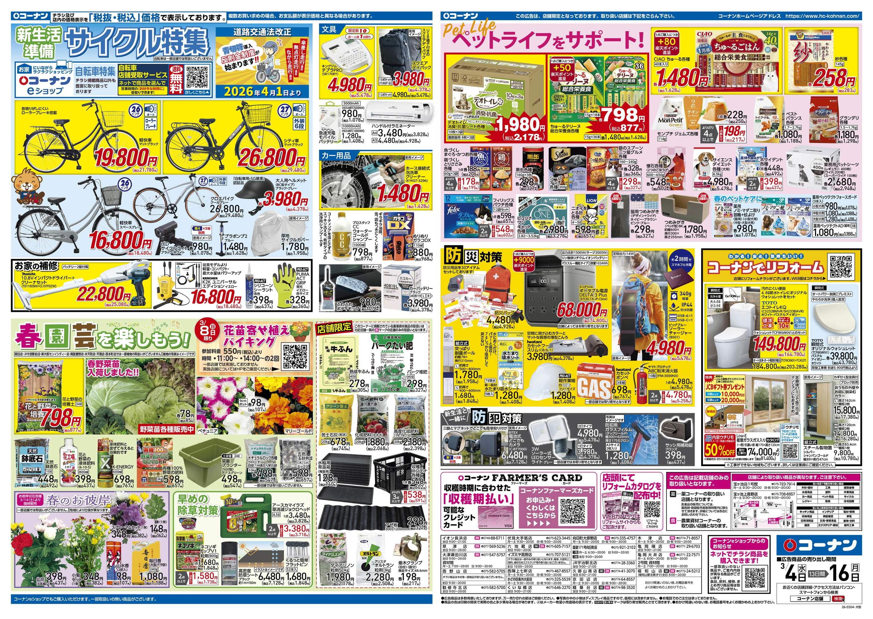 ホームセンターコーナン大津瀬田川店今週のチラシ(2026年3月2日〜3月8日)
