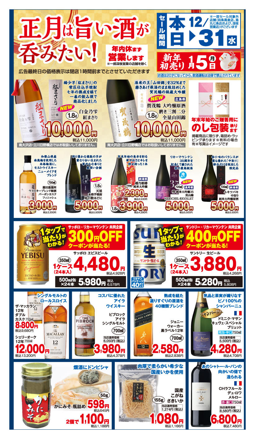 リカーマウンテン雄琴店今週のチラシ(2025年12月22日〜12月28日)