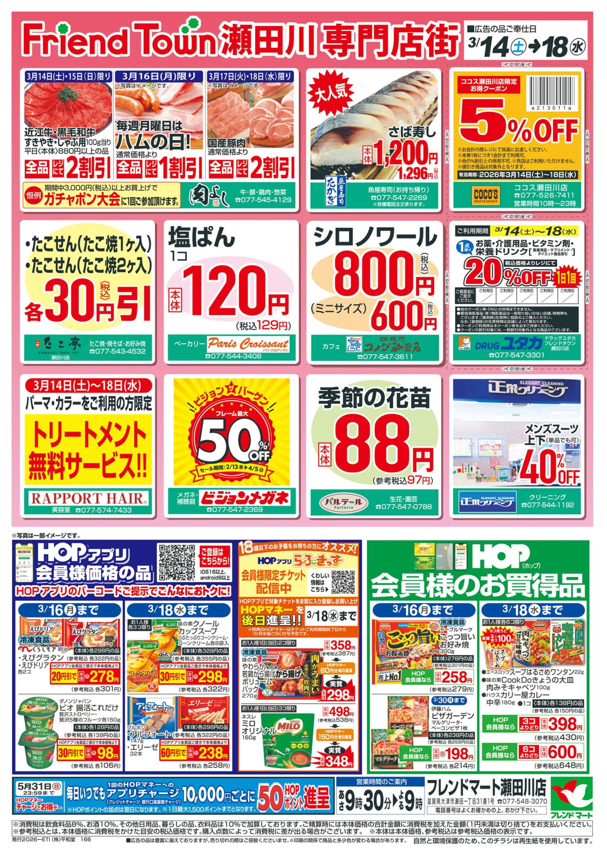 フレンドマート瀬田川店今週のチラシ(2026年3月16日〜3月22日)