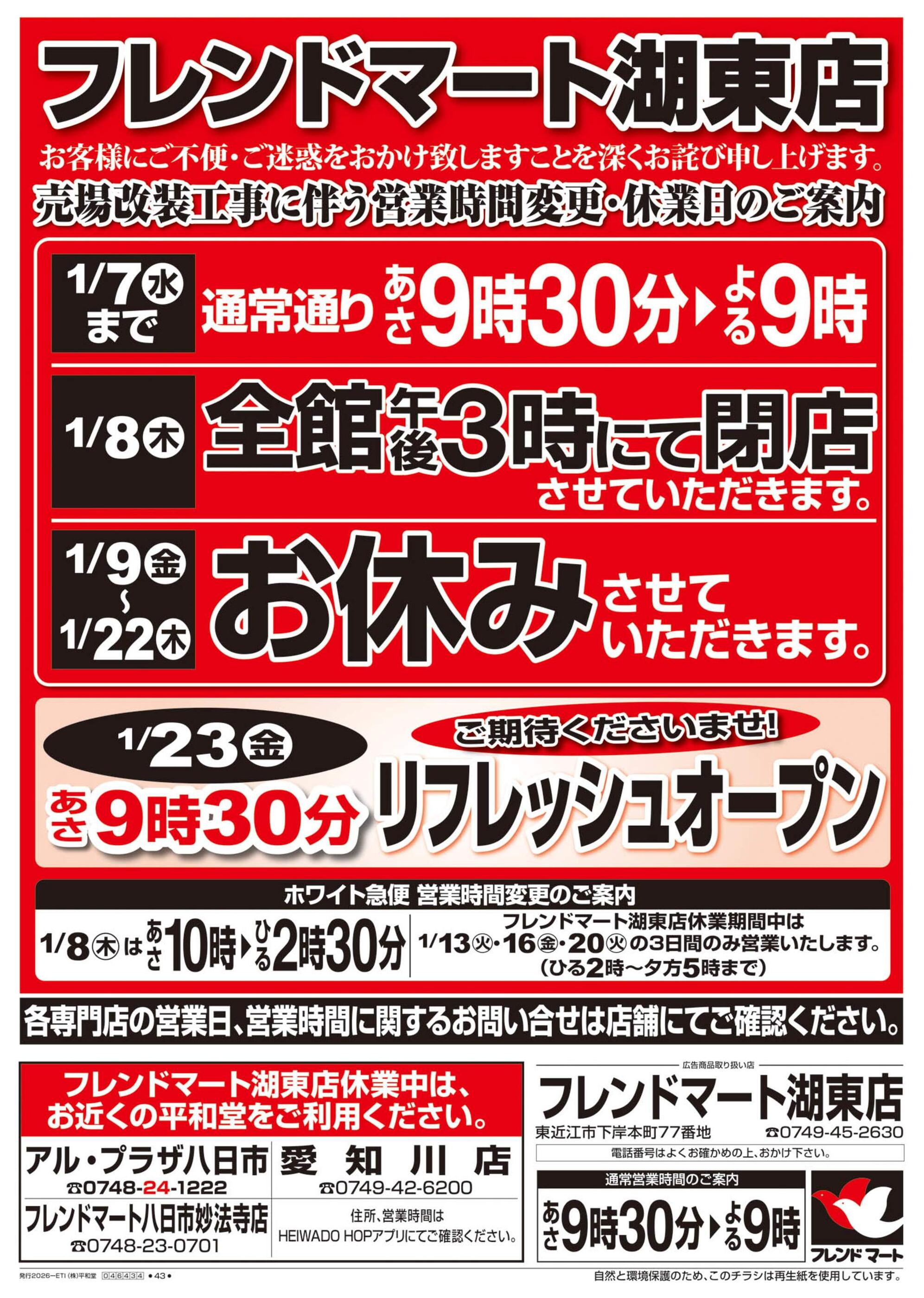 フレンドマート湖東店今週のチラシ(2026年1月5日〜1月11日)