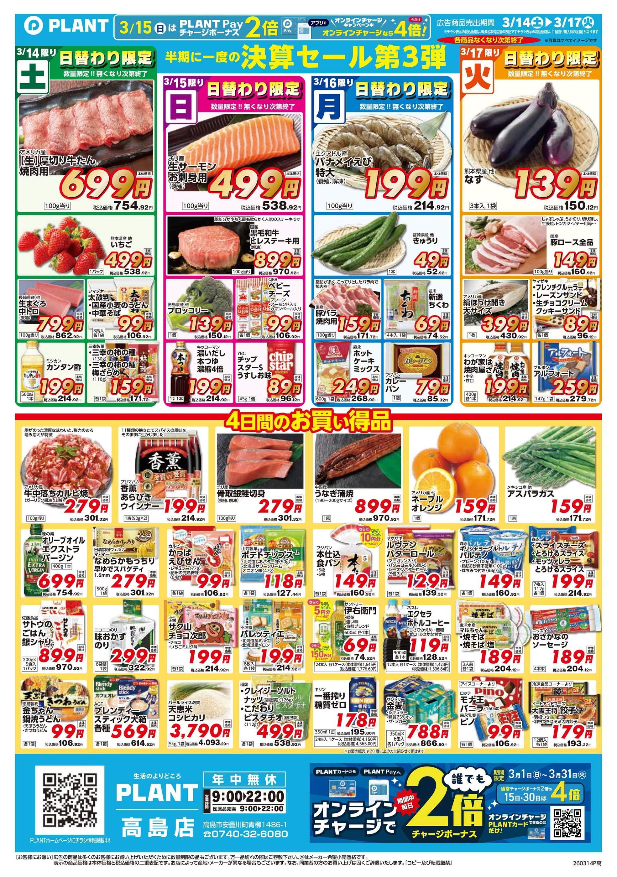 PLANT高島店今週のチラシ(2026年3月30日〜4月5日)