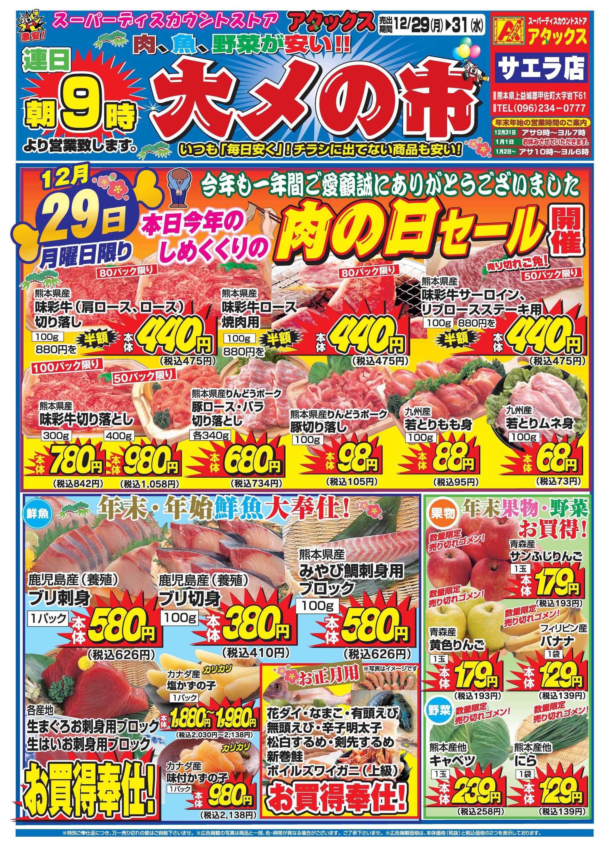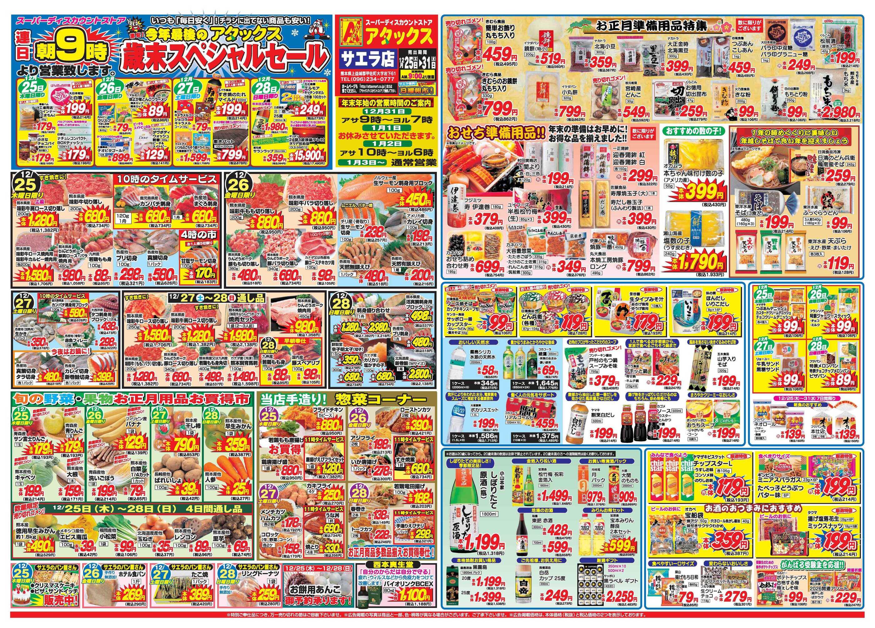 アタックスサエラ店今週のチラシ(2025年12月29日〜1月4日)