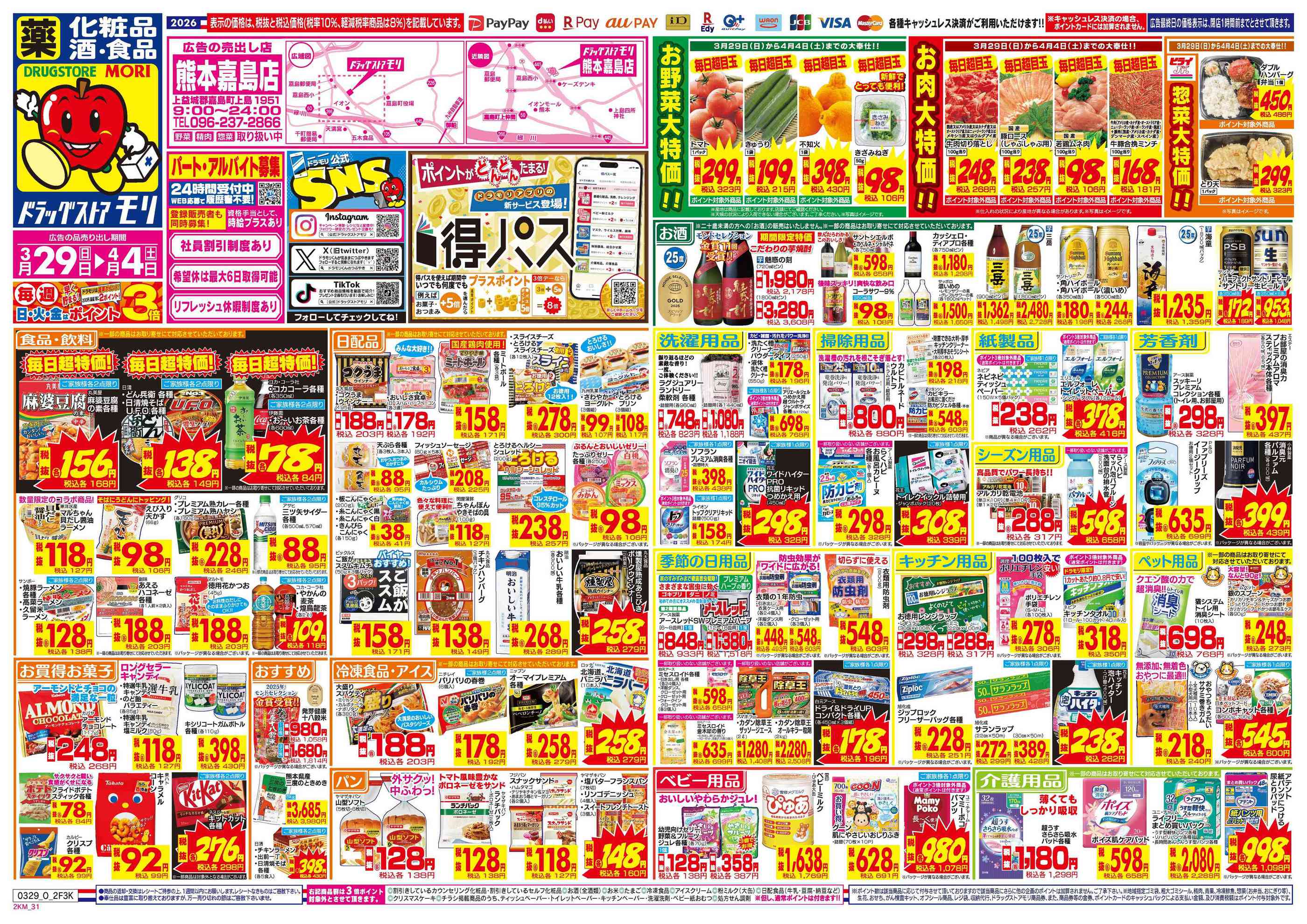 ドラッグストアモリ熊本嘉島店今週のチラシ(2026年3月30日〜4月5日)