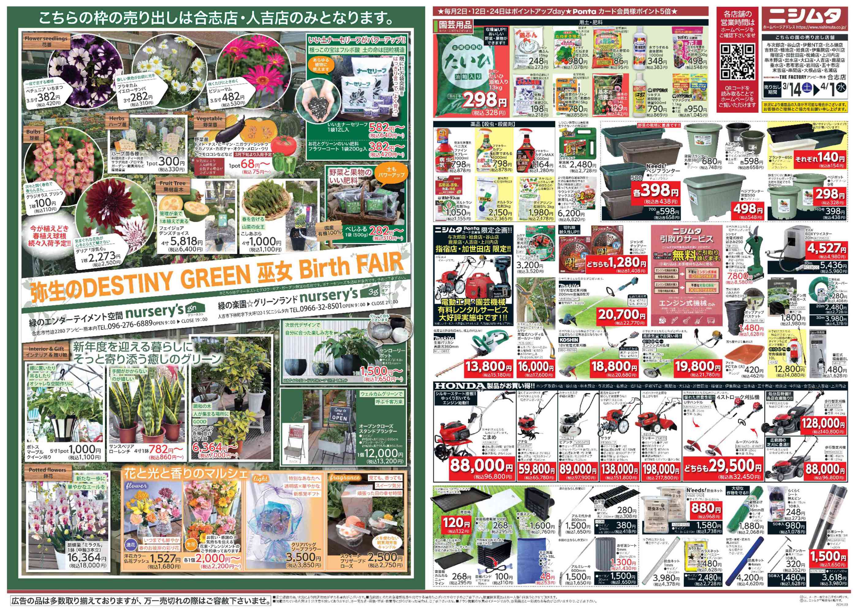 ニシムタザ・ファクトリー熊本合志店今週のチラシ(2026年3月30日〜4月5日)