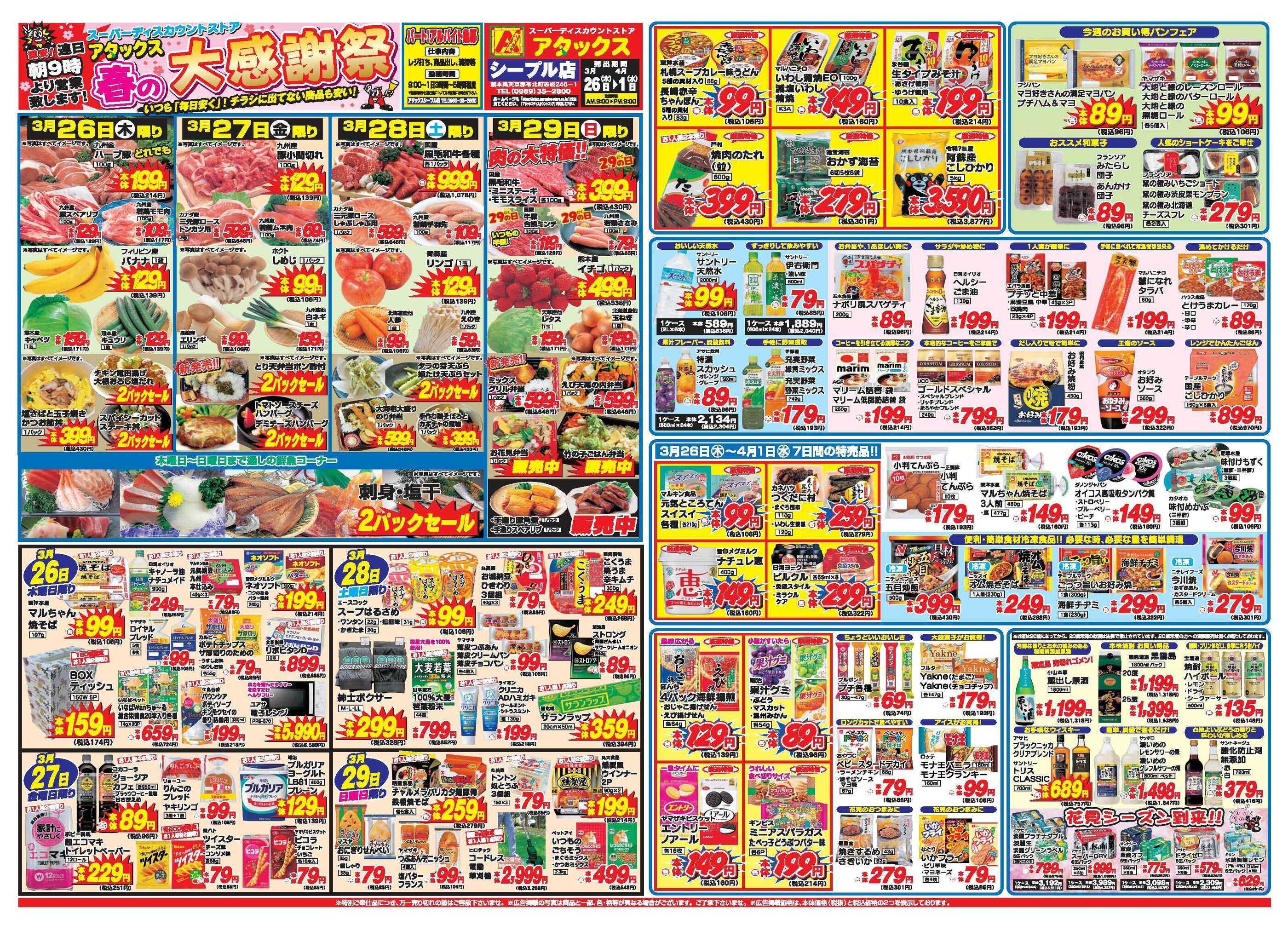 アタックス シープル店今週のチラシ(2026年3月30日〜4月5日)