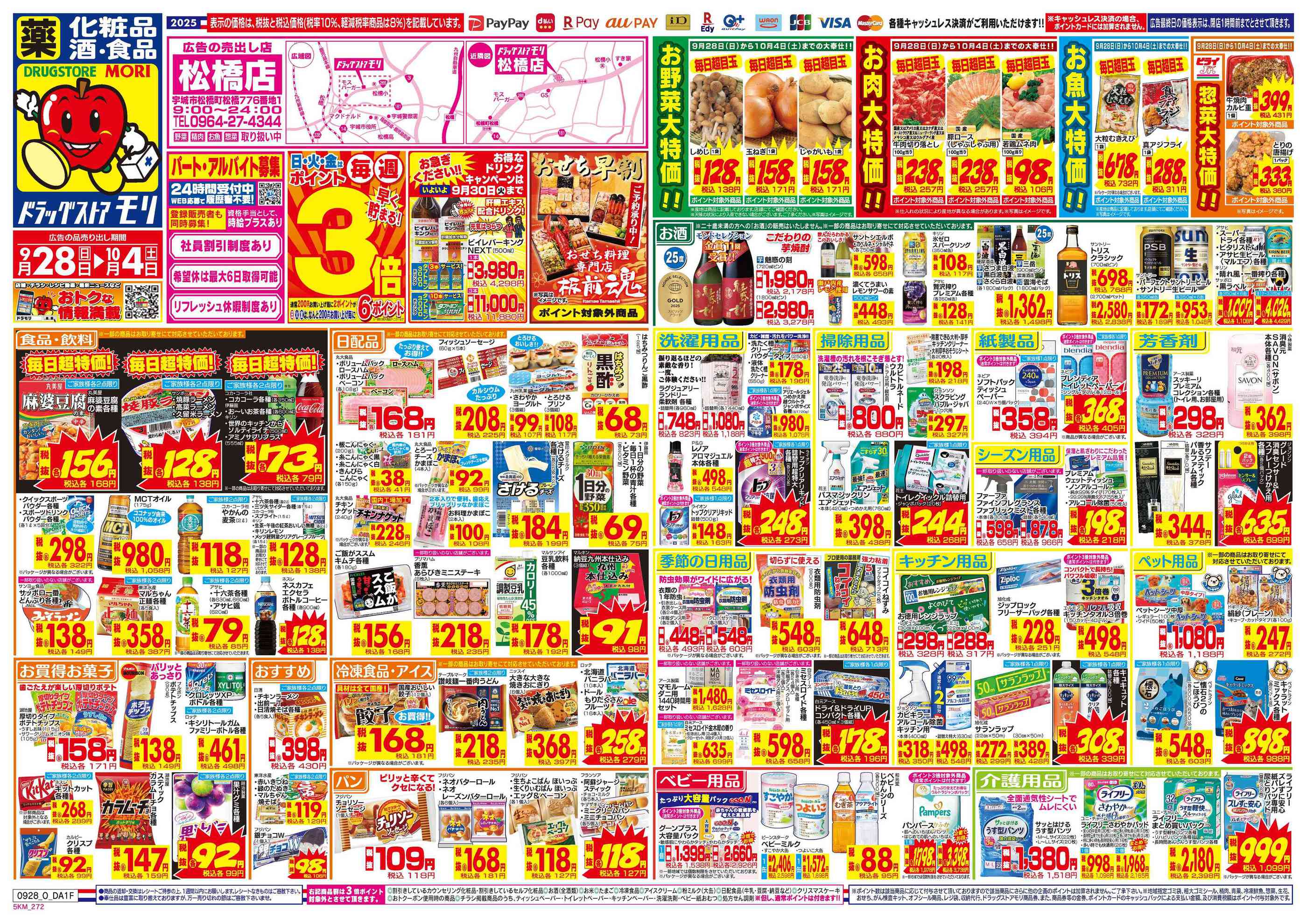 ドラッグストアモリ松橋店今週のチラシ(2025年9月29日〜10月5日)