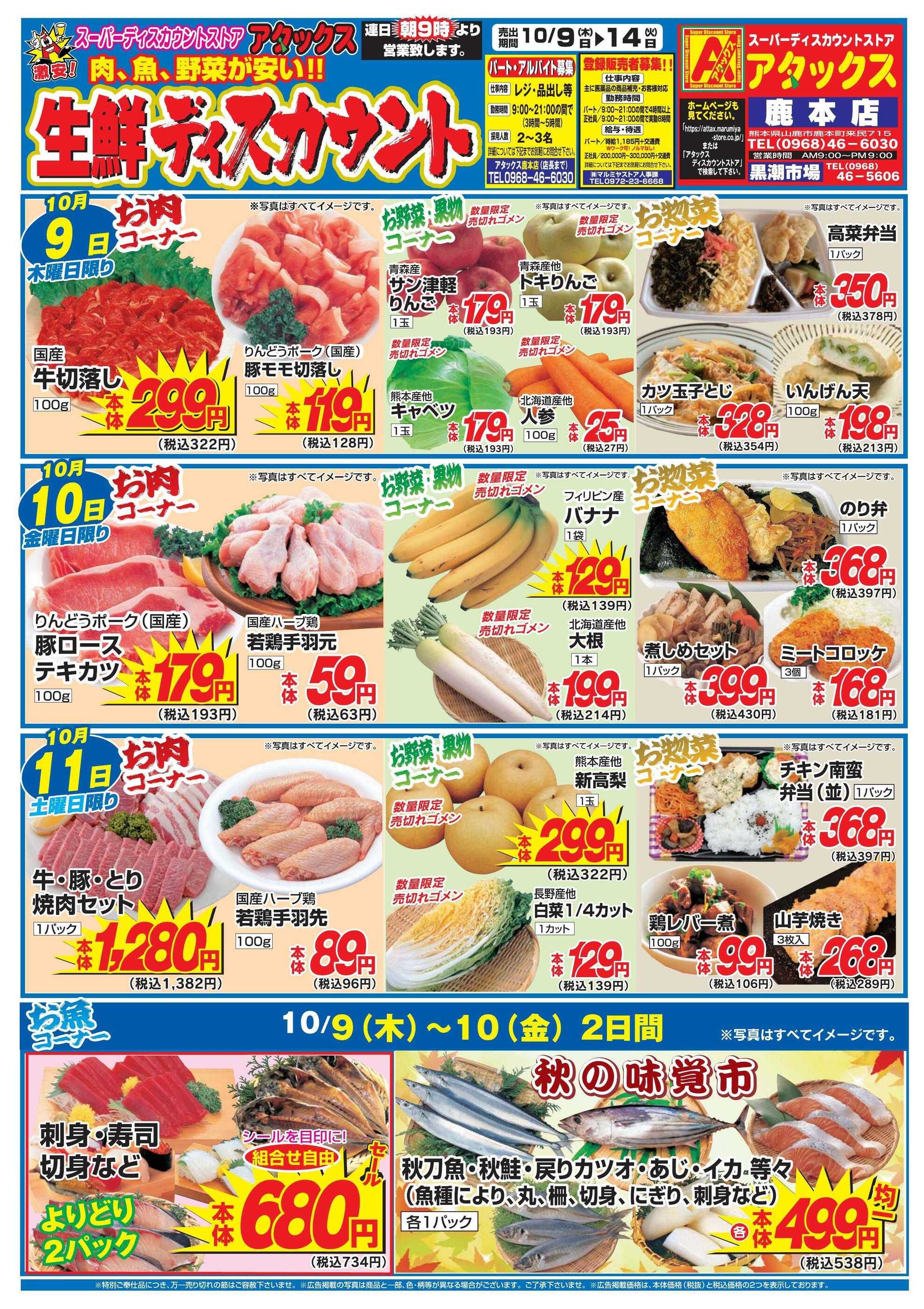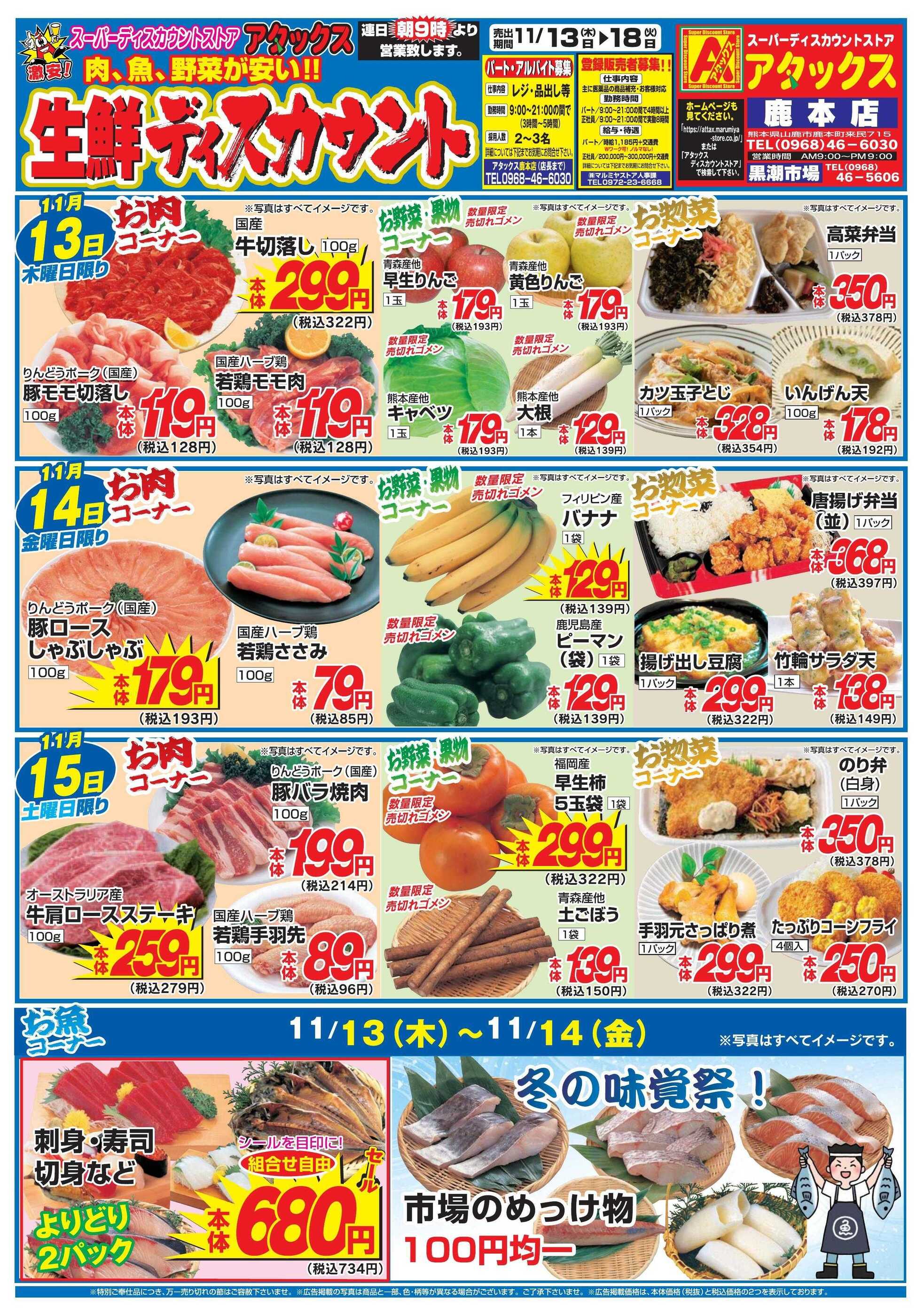 アタックス鹿本店今週のチラシ(2025年11月10日〜11月16日)