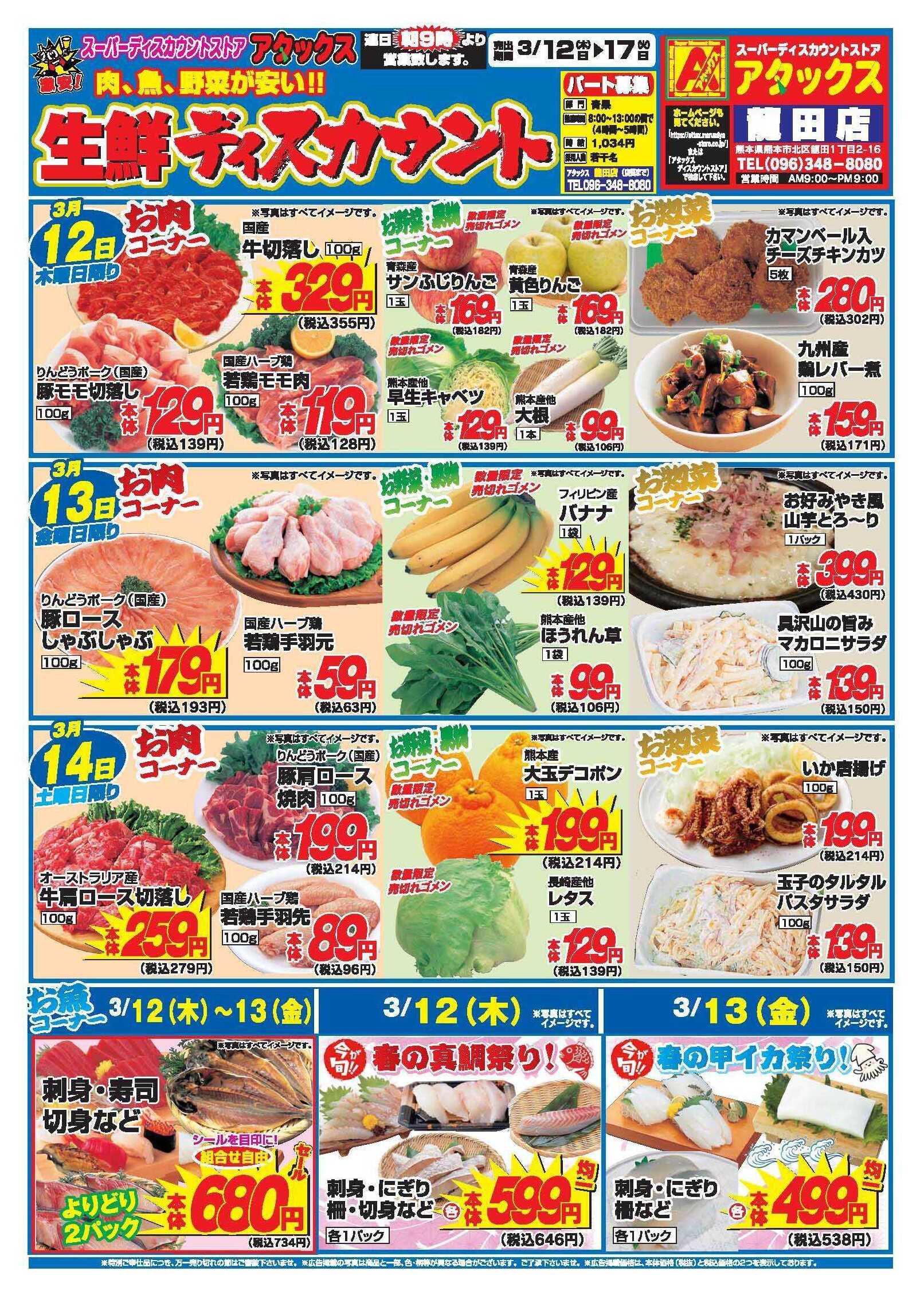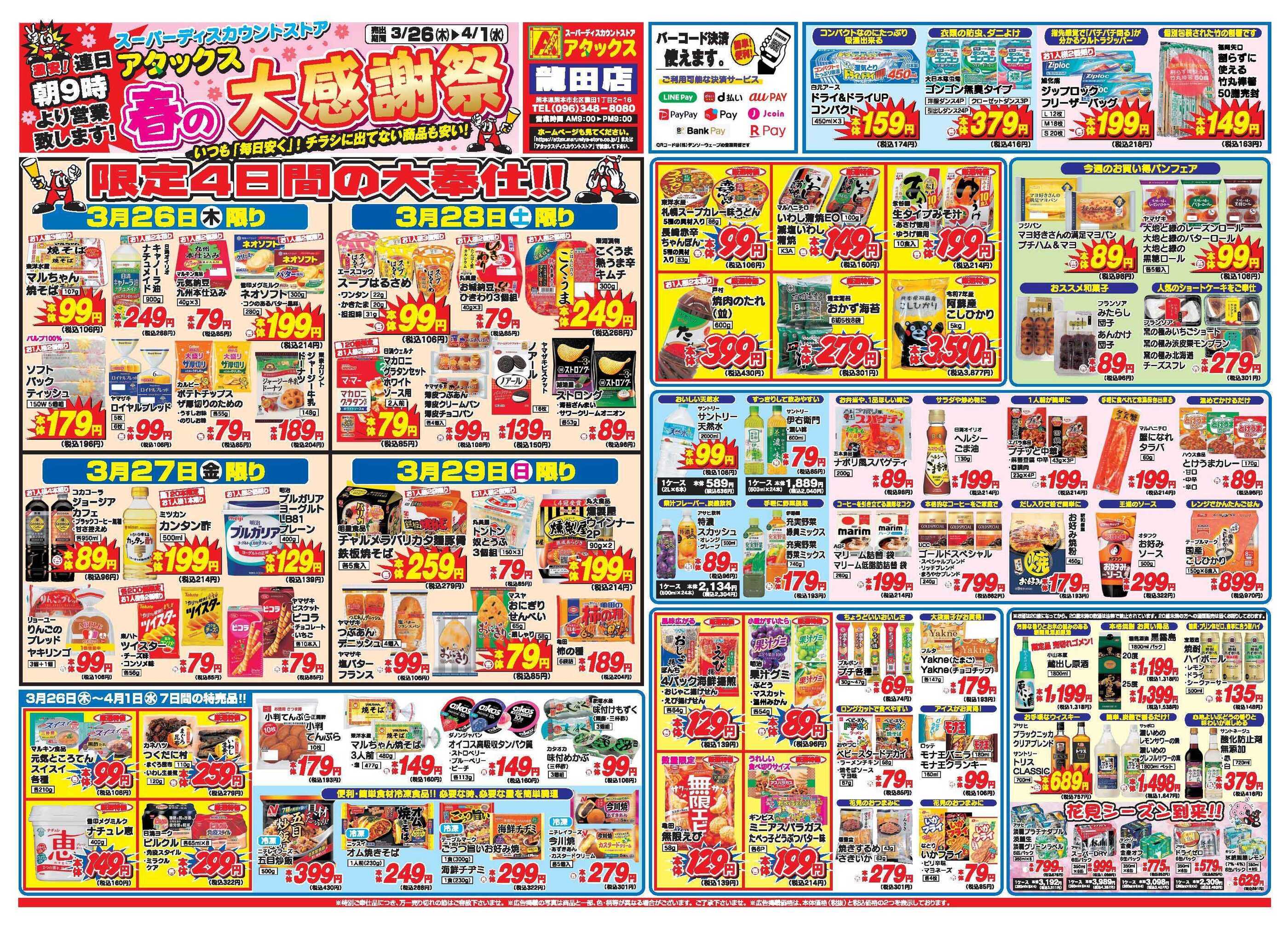 アタックス龍田店今週のチラシ(2026年3月30日〜4月5日)