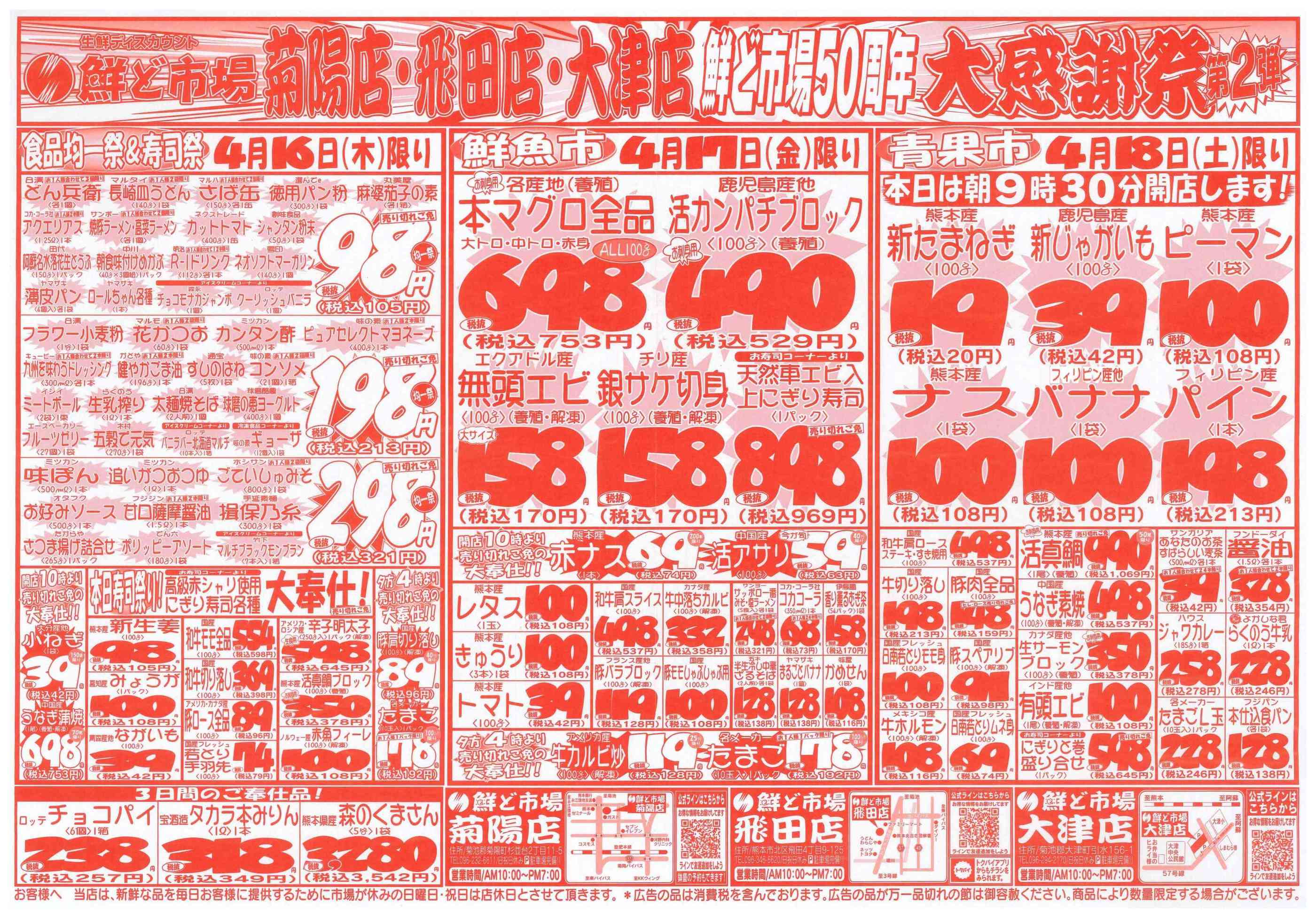 鮮ど市場飛田店今週のチラシ(2026年4月13日〜4月19日)