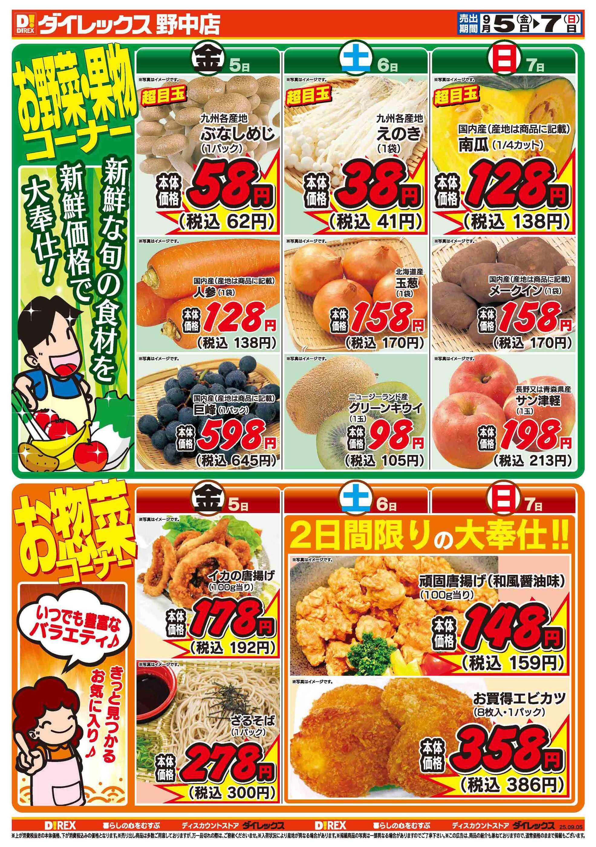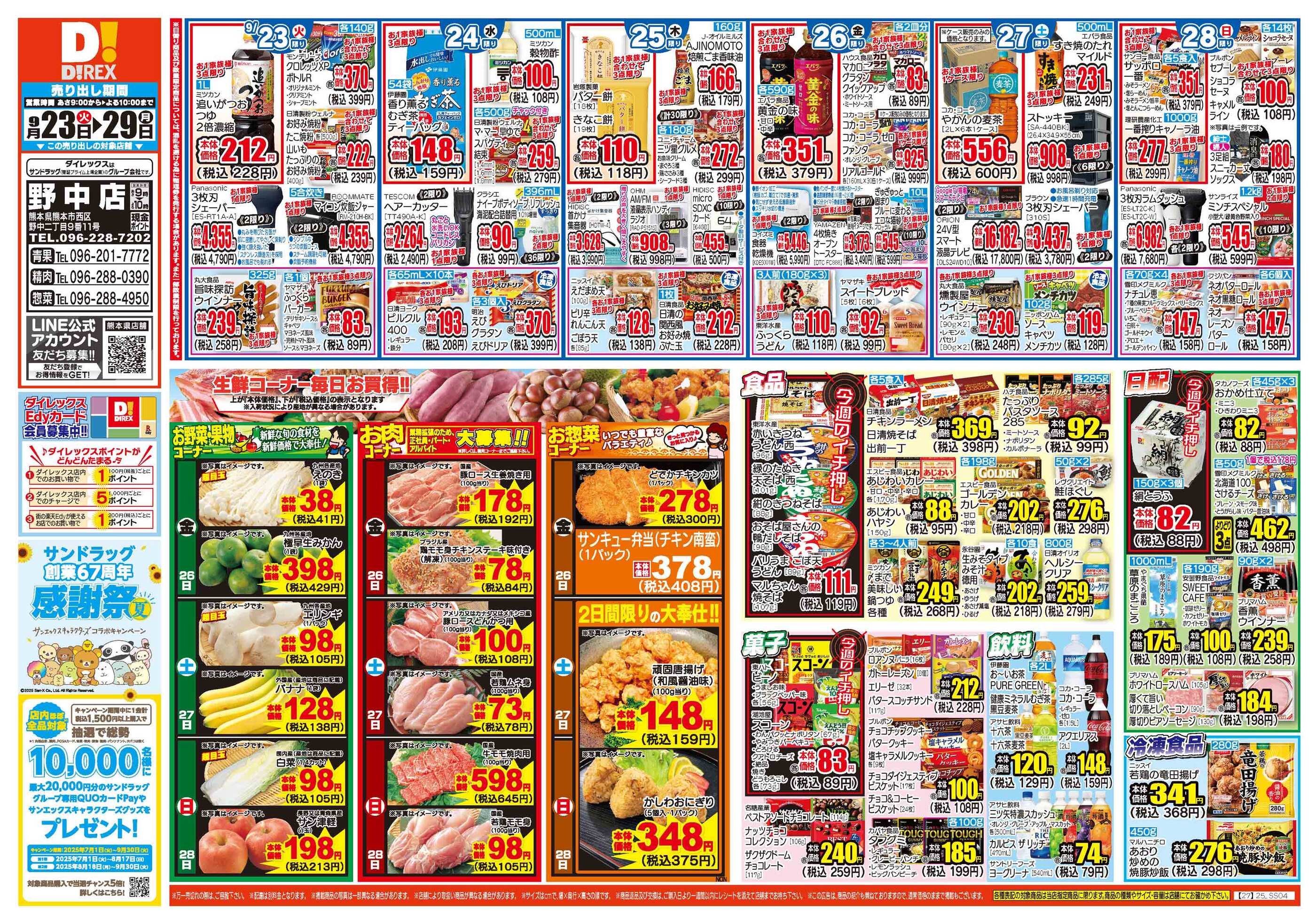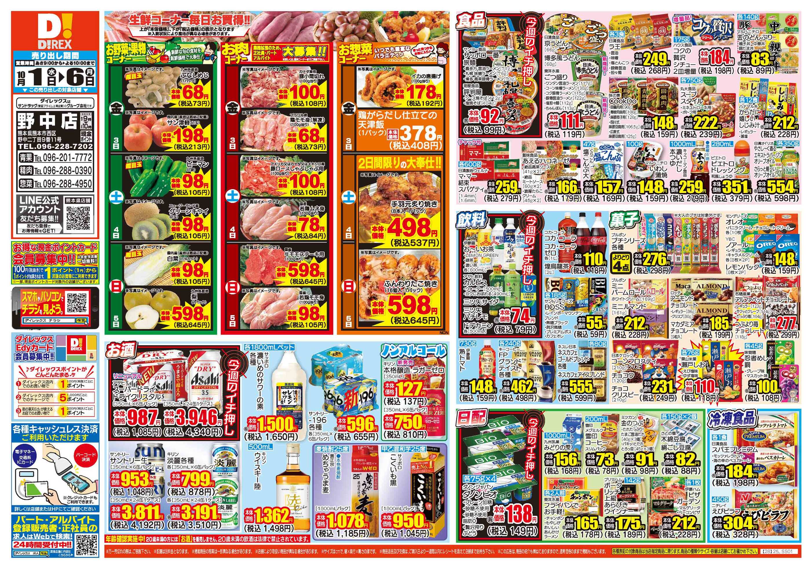 ダイレックス野中店今週のチラシ(2025年9月29日〜10月5日)
