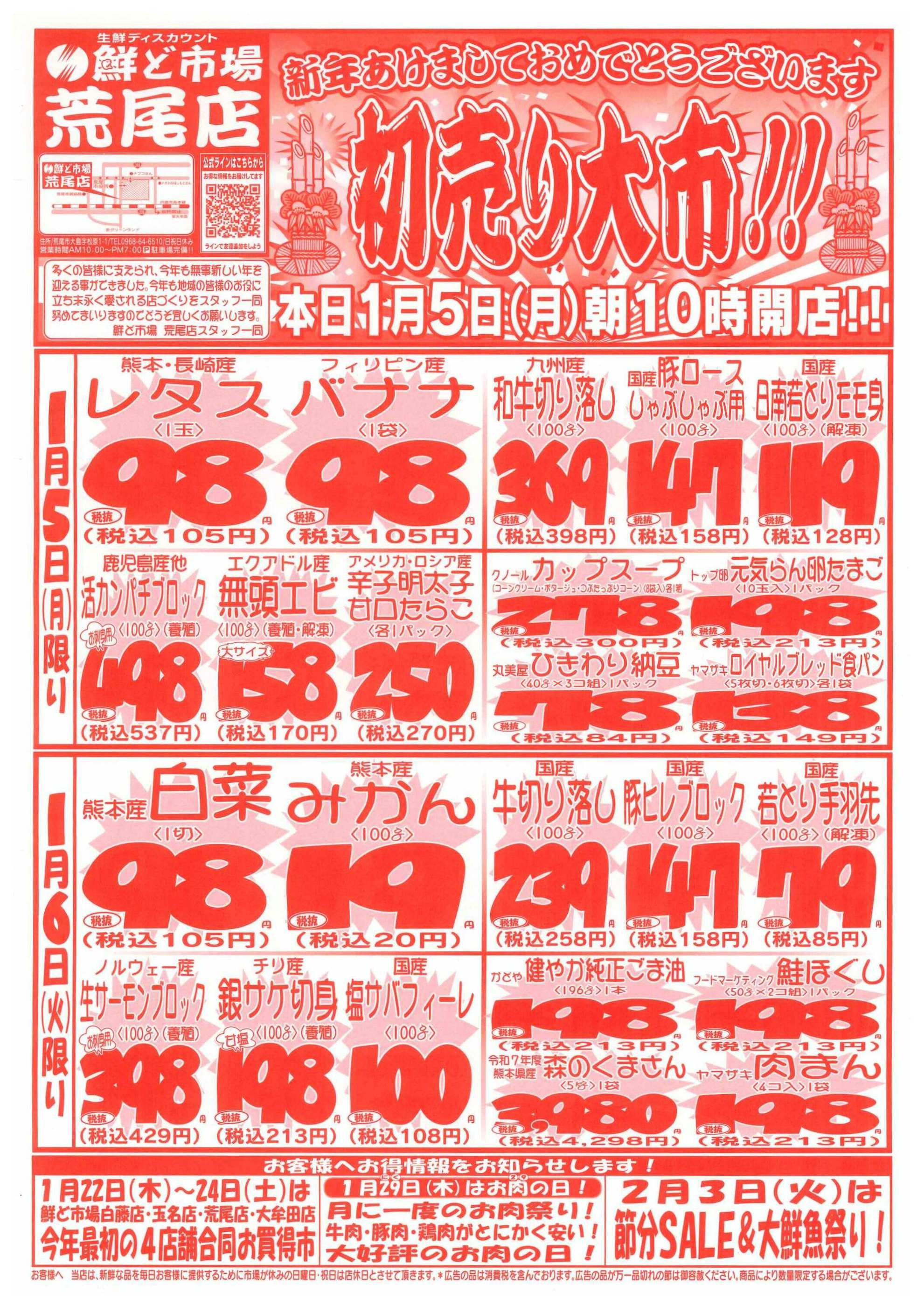 鮮ど市場荒尾店今週のチラシ(2026年1月12日〜1月18日)