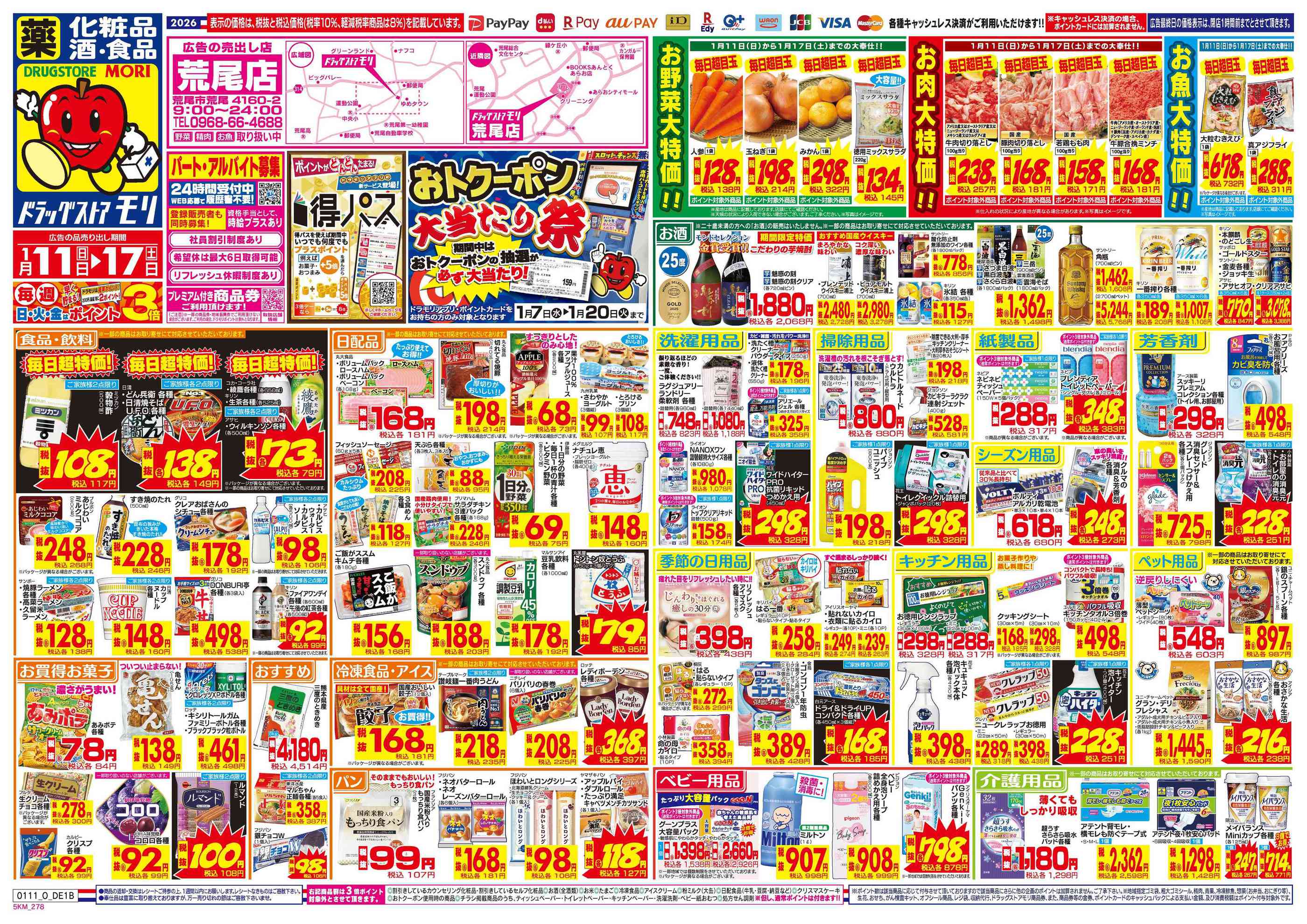 ドラッグストアモリ荒尾店今週のチラシ(2026年1月12日〜1月18日)