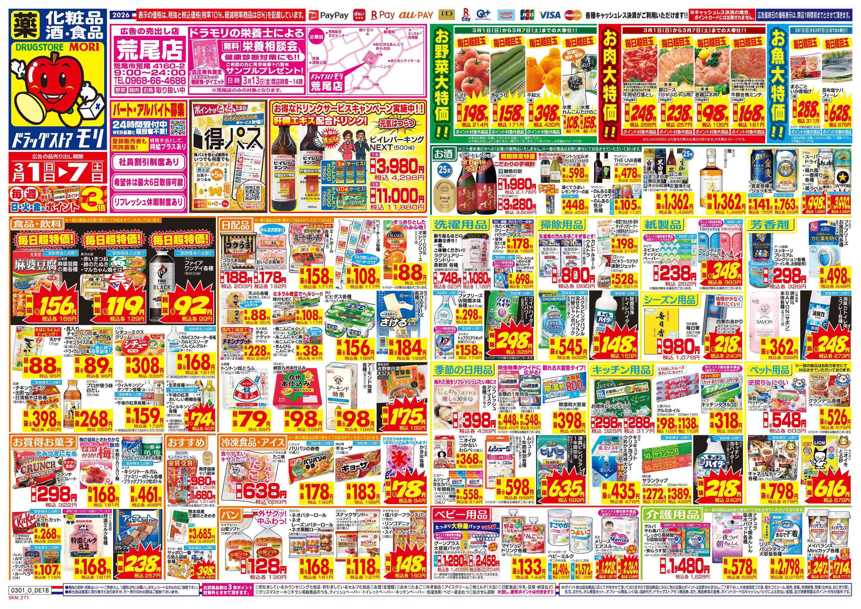 ドラッグストアモリ荒尾店今週のチラシ(2026年3月2日〜3月8日)
