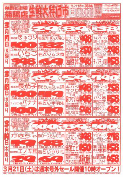 ※「店舗の掲載内容について」チラシガイドに掲載している情報は、独自に調査した内容及びユーザーから頂いた情報を掲載しています。お気づきの点がございましたら「お問い合わせ」よりご連絡ください。また店舗の営業状況、商品に関するお問い合わせは直接店舗事業者にご確認ください。