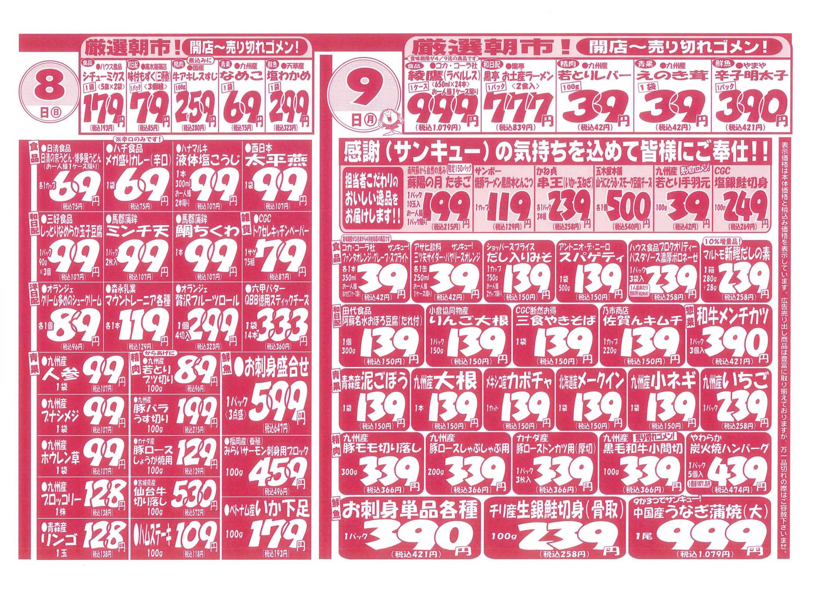 ※「店舗の掲載内容について」チラシガイドに掲載している情報は、独自に調査した内容及びユーザーから頂いた情報を掲載しています。お気づきの点がございましたら「お問い合わせ」よりご連絡ください。また店舗の営業状況、商品に関するお問い合わせは直接店舗事業者にご確認ください。