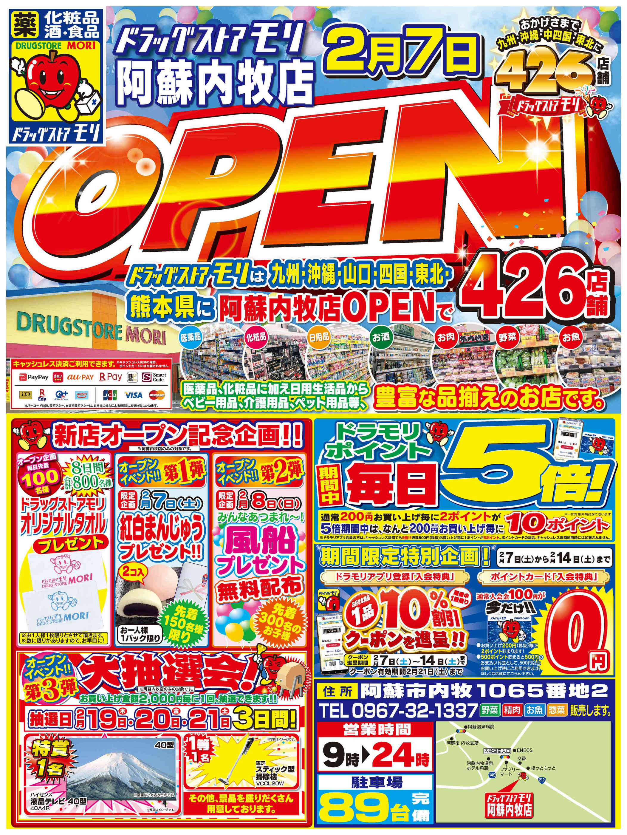[2/7open]ドラッグストアモリ阿蘇内牧店