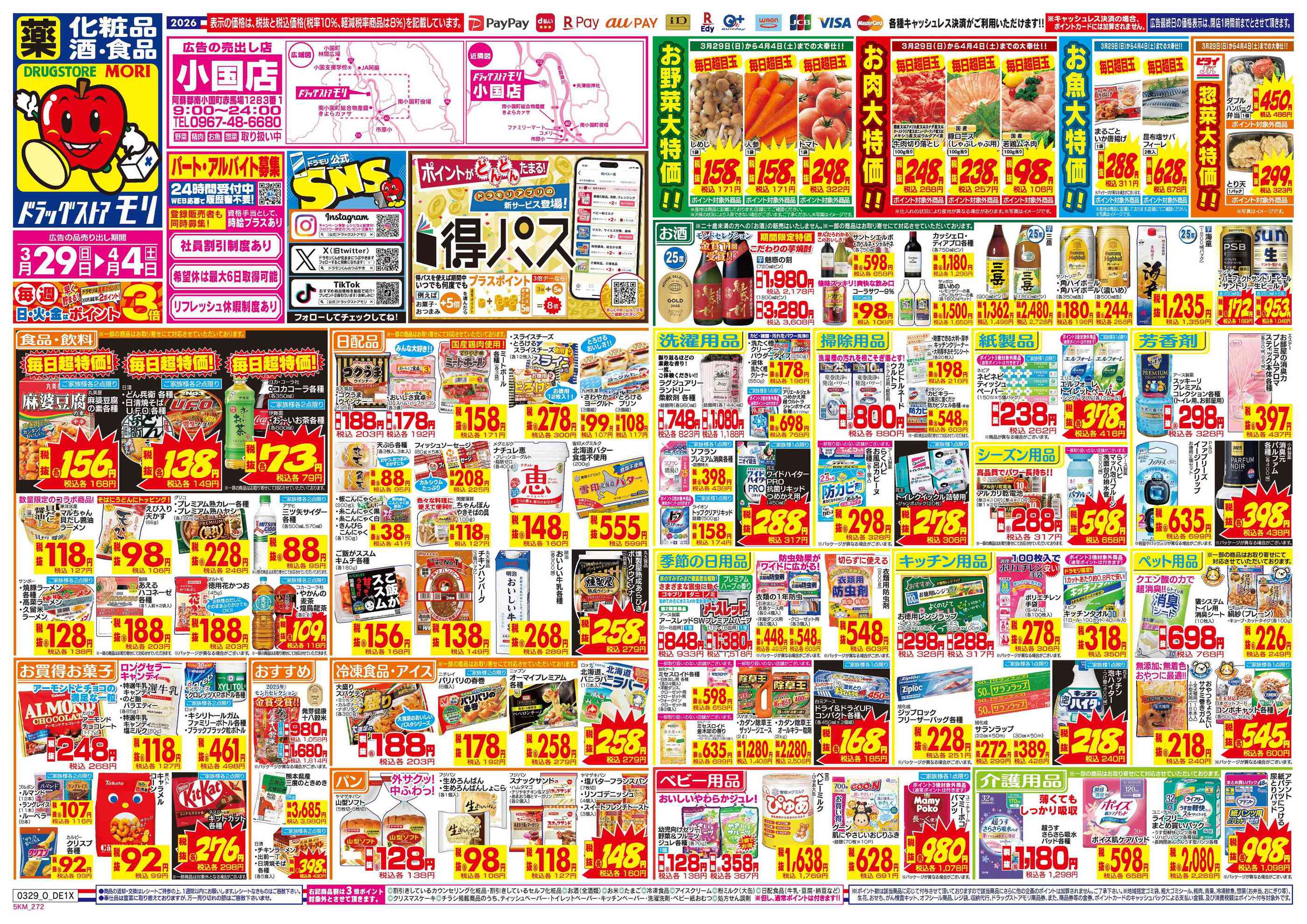 ドラッグストアモリ小国店今週のチラシ(2026年3月30日〜4月5日)