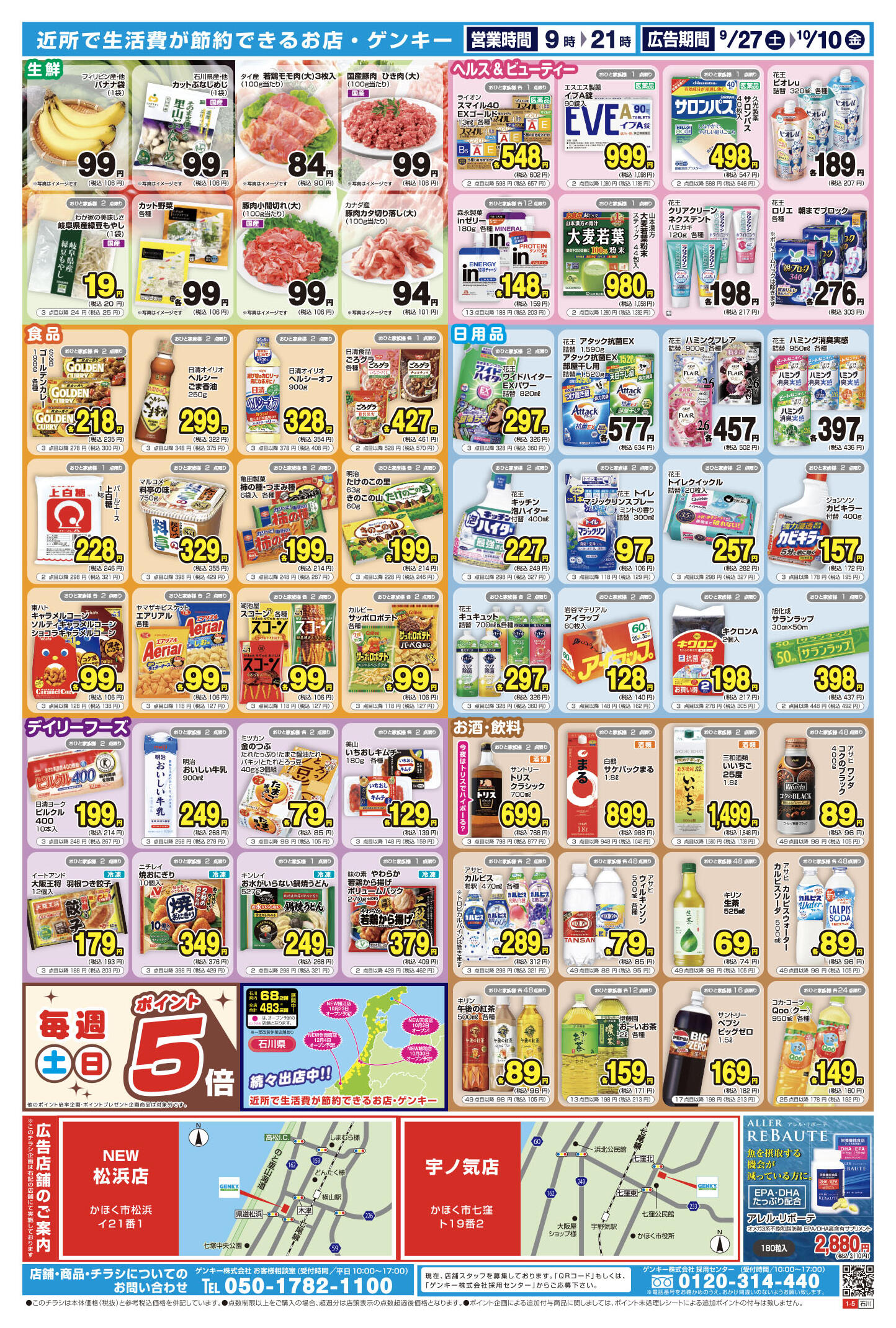 ゲンキー宇ノ気店今週のチラシ(2025年9月29日〜10月5日)
