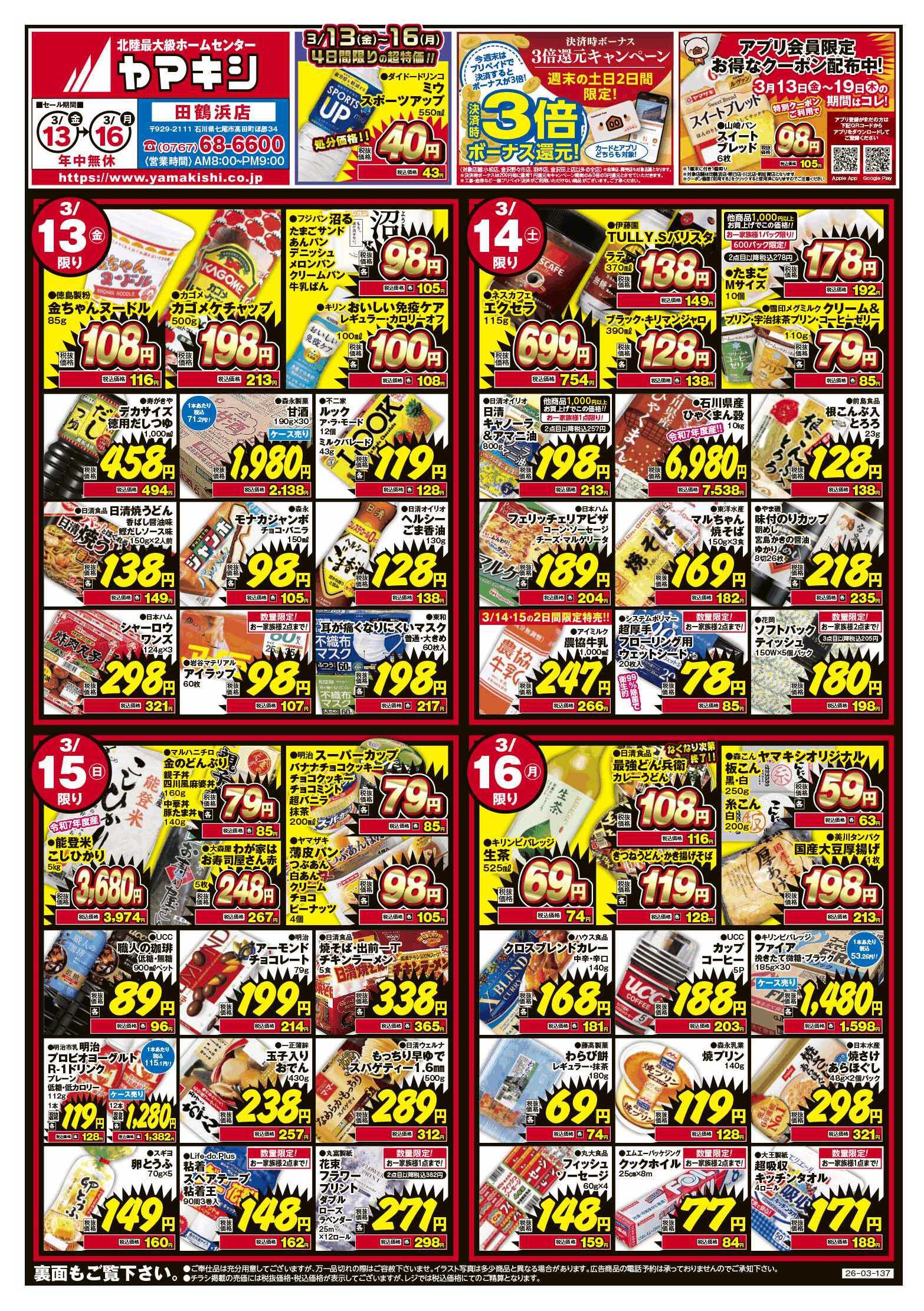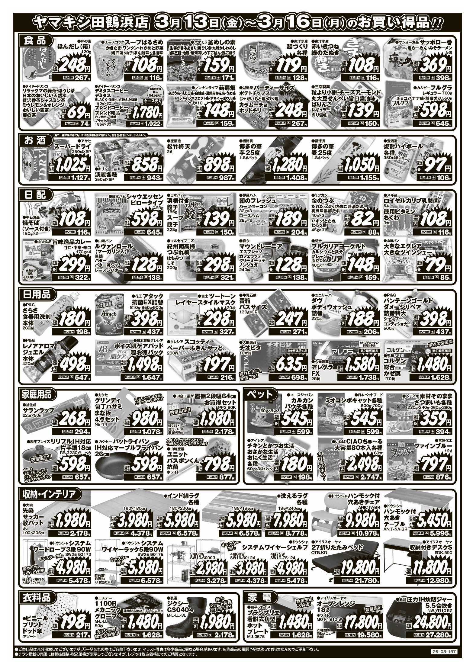 ヤマキシ田鶴浜店今週のチラシ(2026年3月9日〜3月15日)