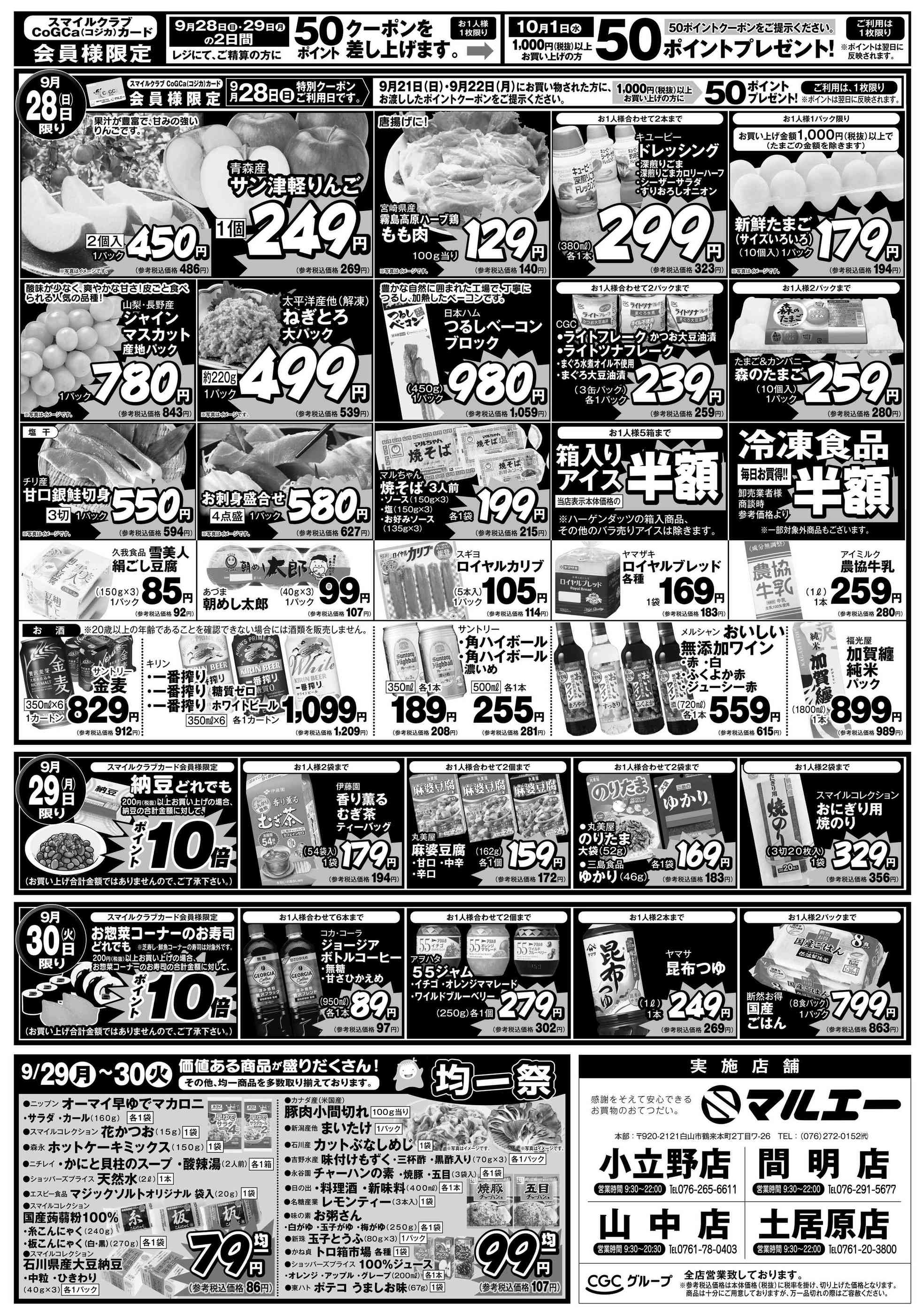 マルエー山中店今週のチラシ(2025年9月29日〜10月5日)