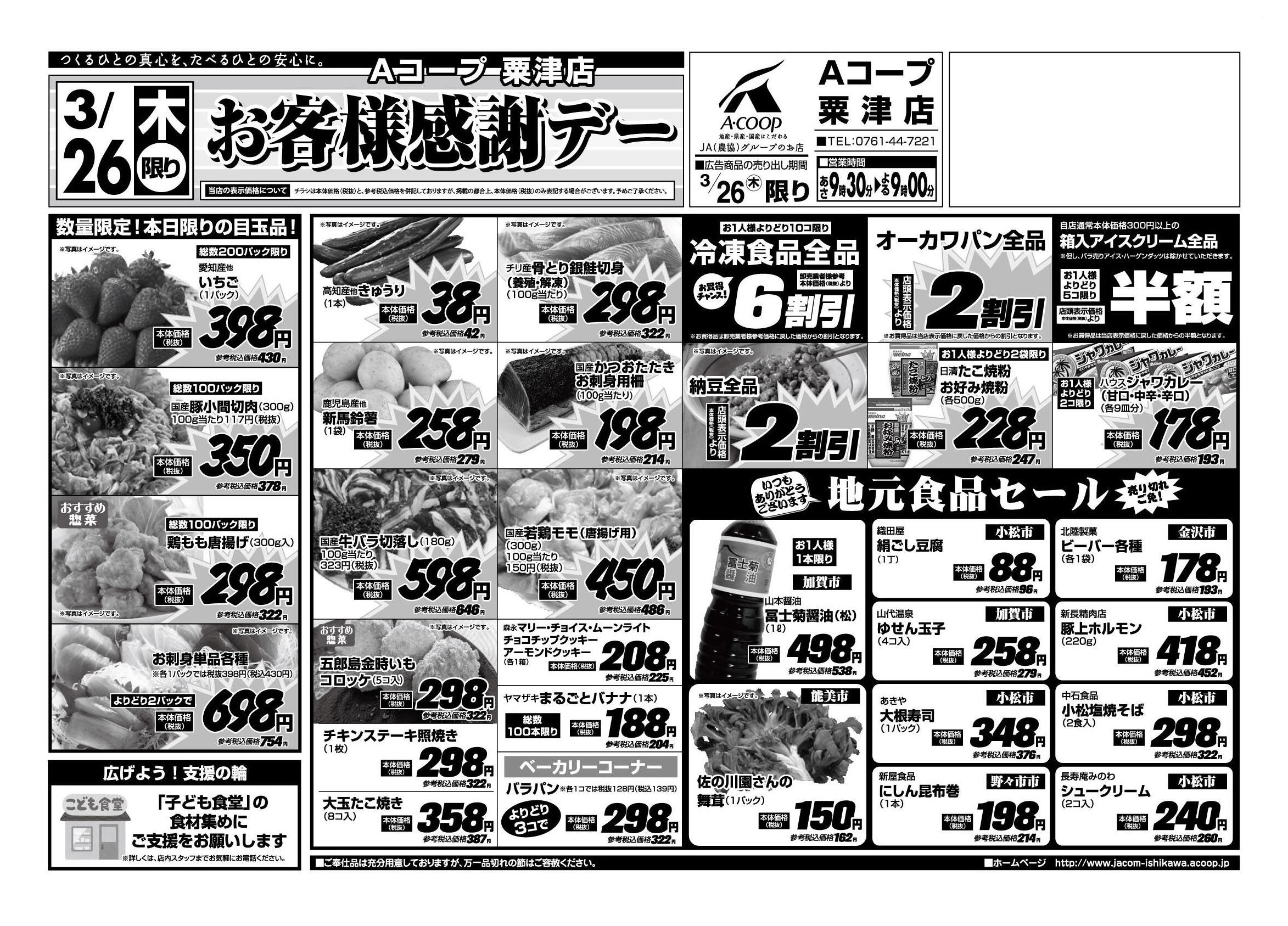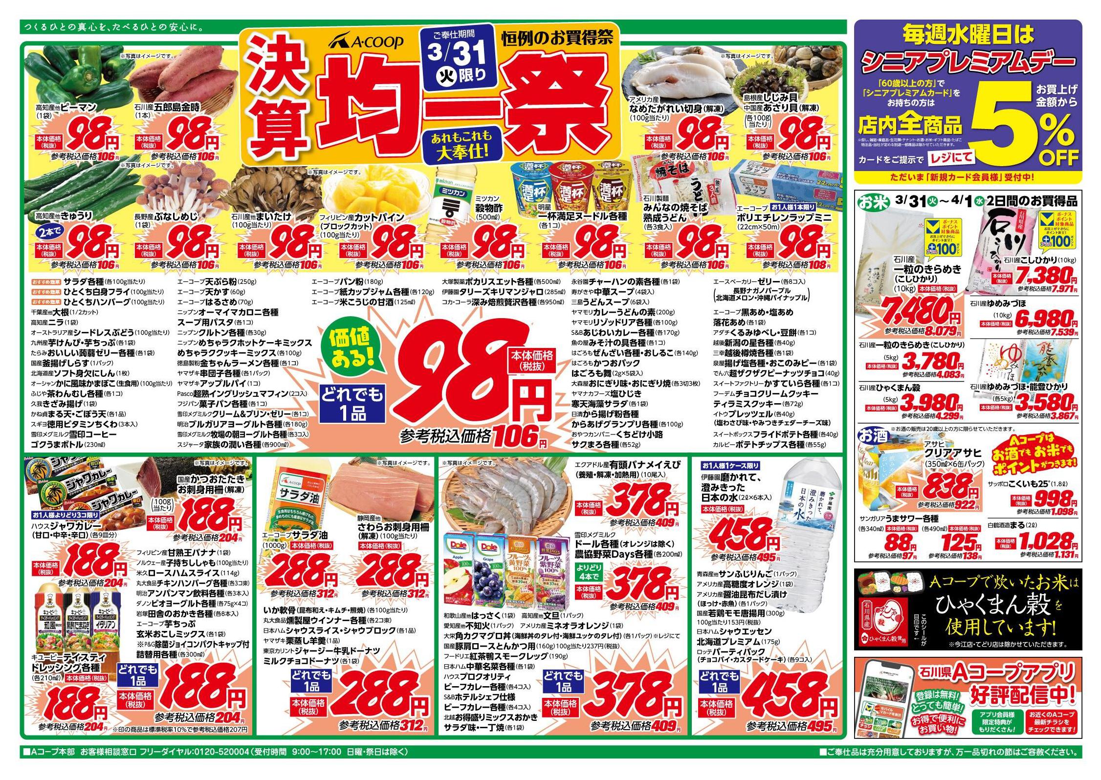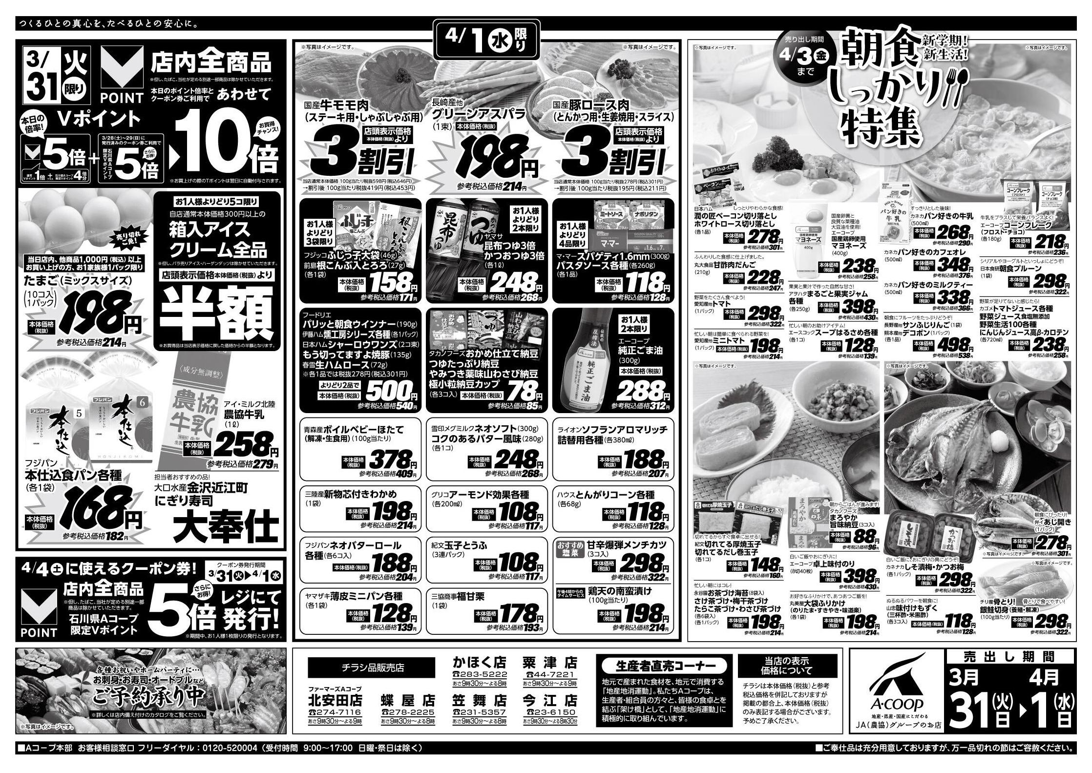 Aコープ粟津店今週のチラシ(2026年3月30日〜4月5日)
