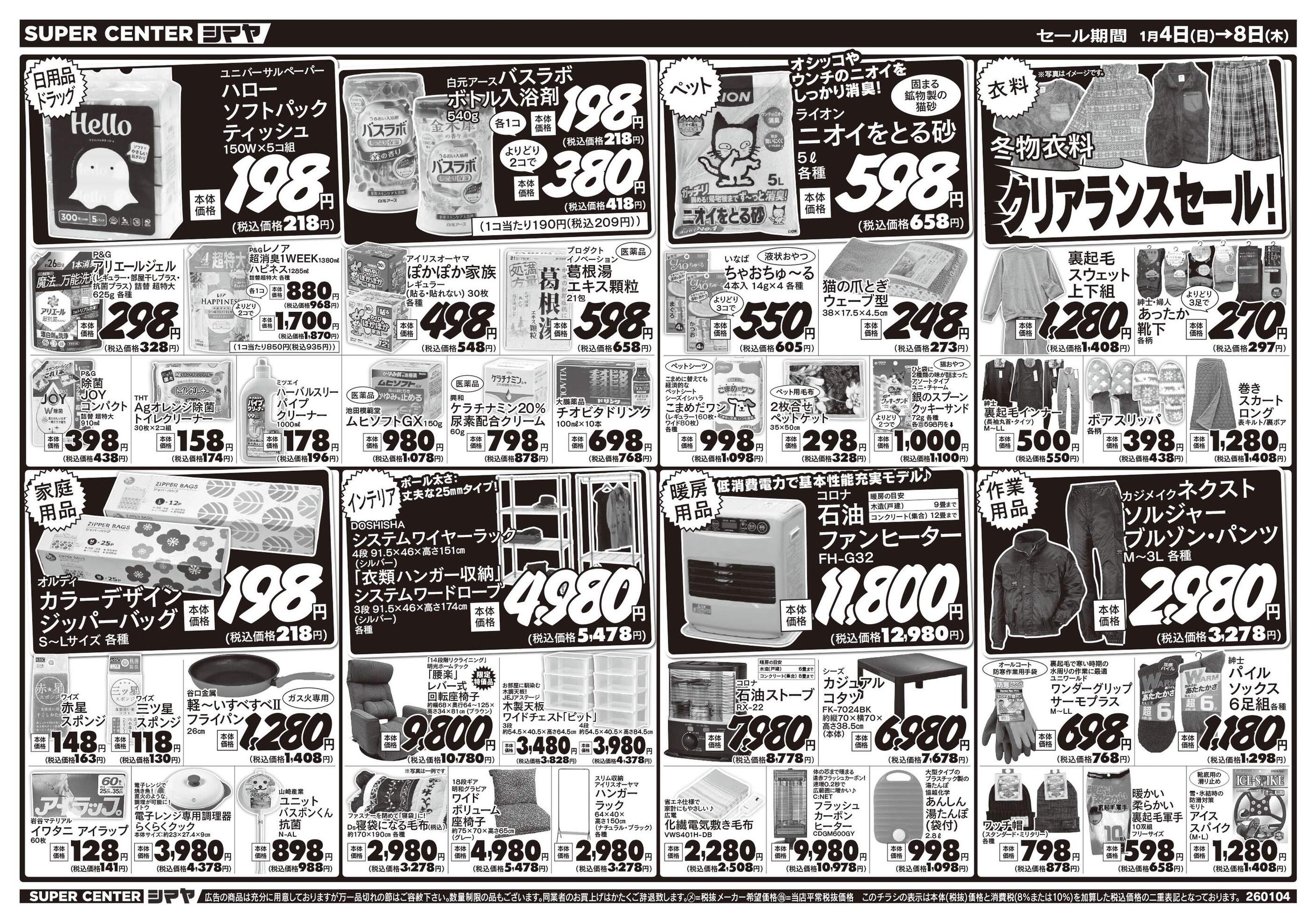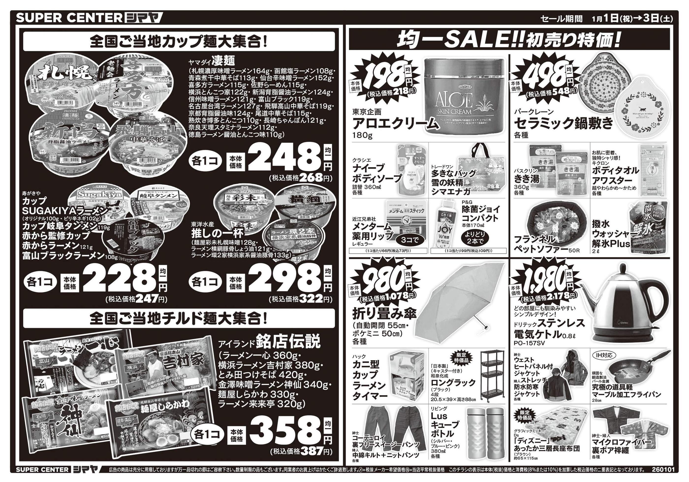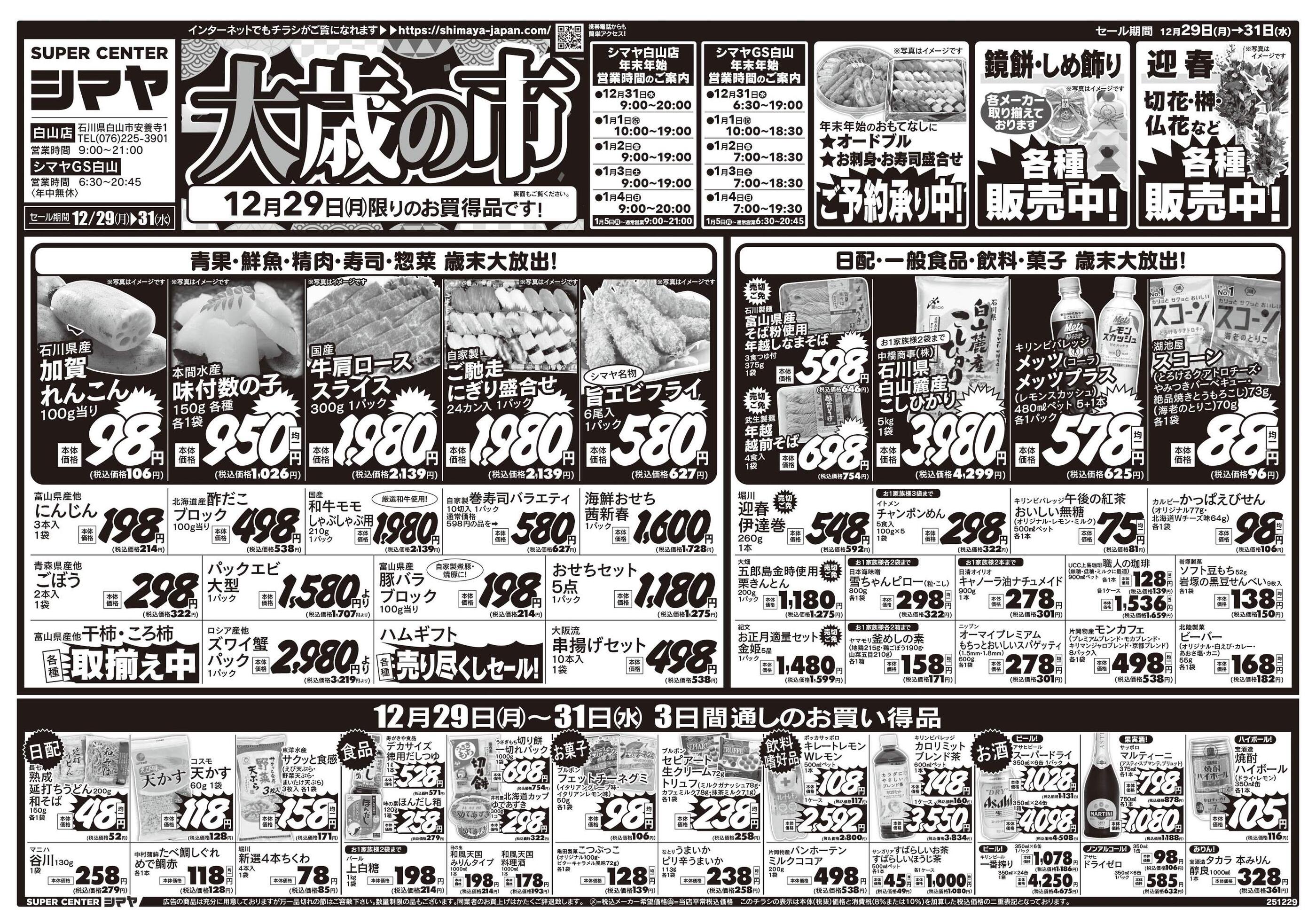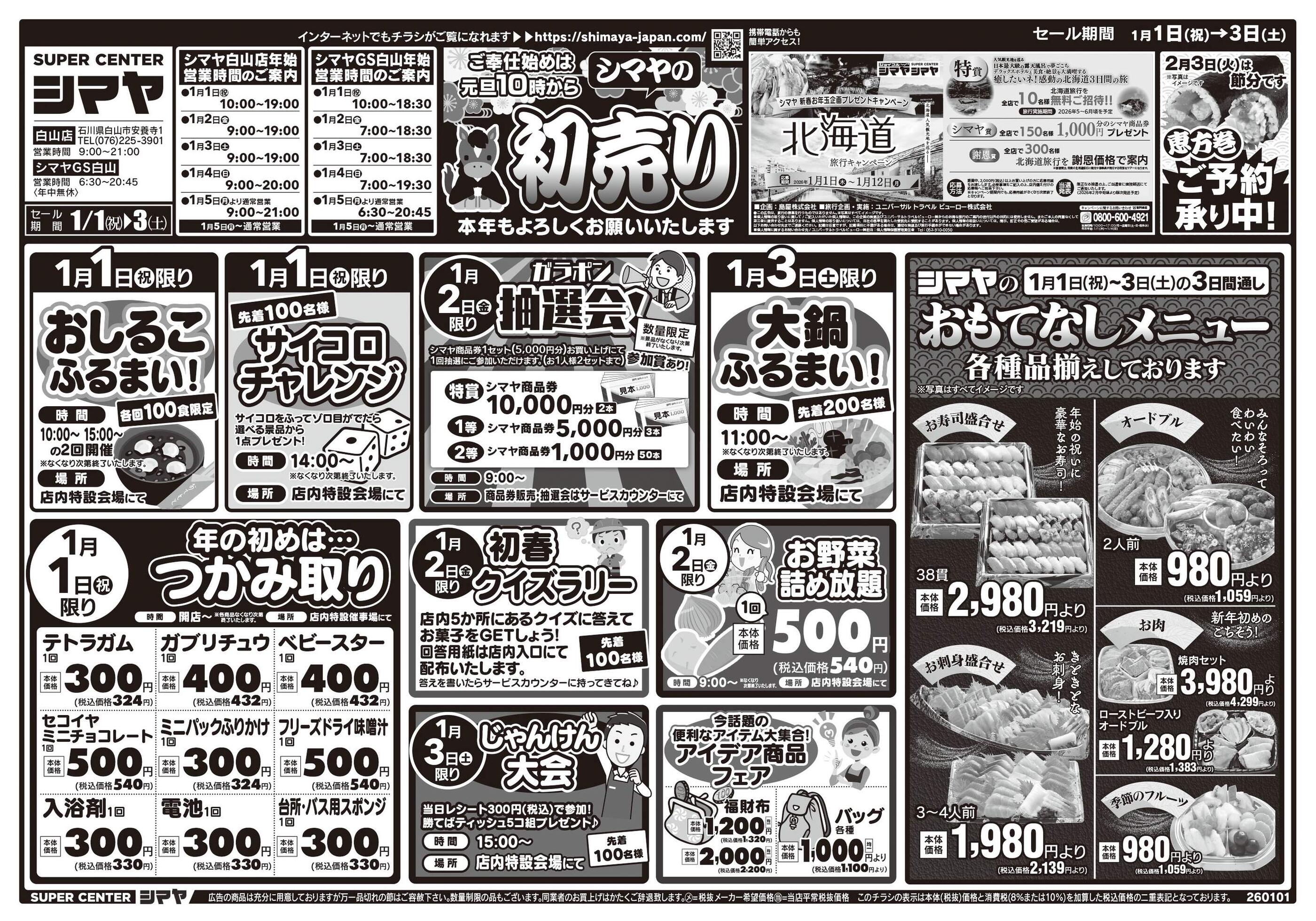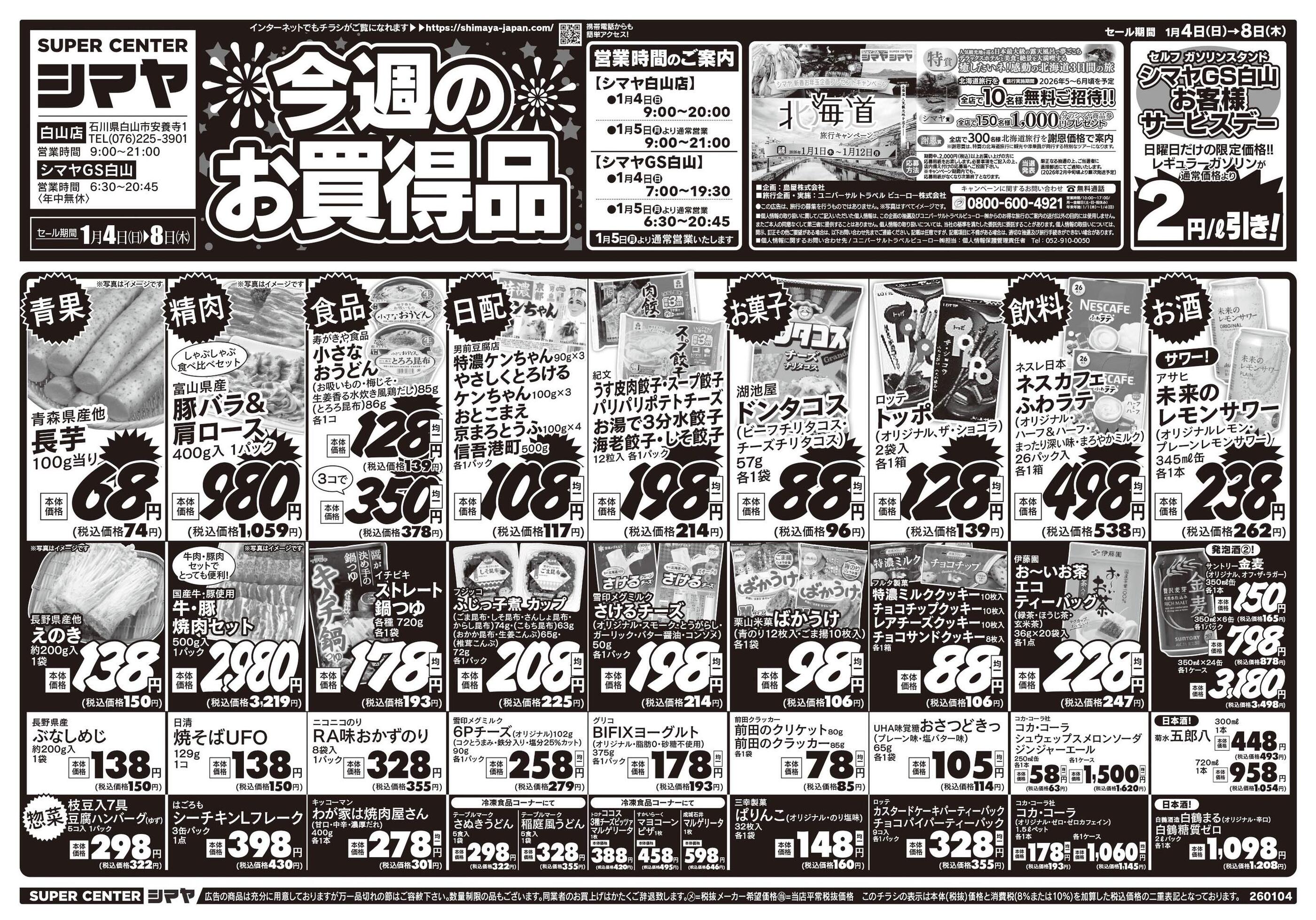 スーパーセンターシマヤ白山店今週のチラシ(2026年1月5日〜1月11日)