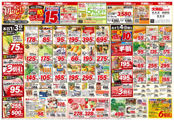 ※「店舗の掲載内容について」チラシガイドに掲載している情報は、独自に調査した内容及びユーザーから頂いた情報を掲載しています。お気づきの点がございましたら「お問い合わせ」よりご連絡ください。また店舗の営業状況、商品に関するお問い合わせは直接店舗事業者にご確認ください。