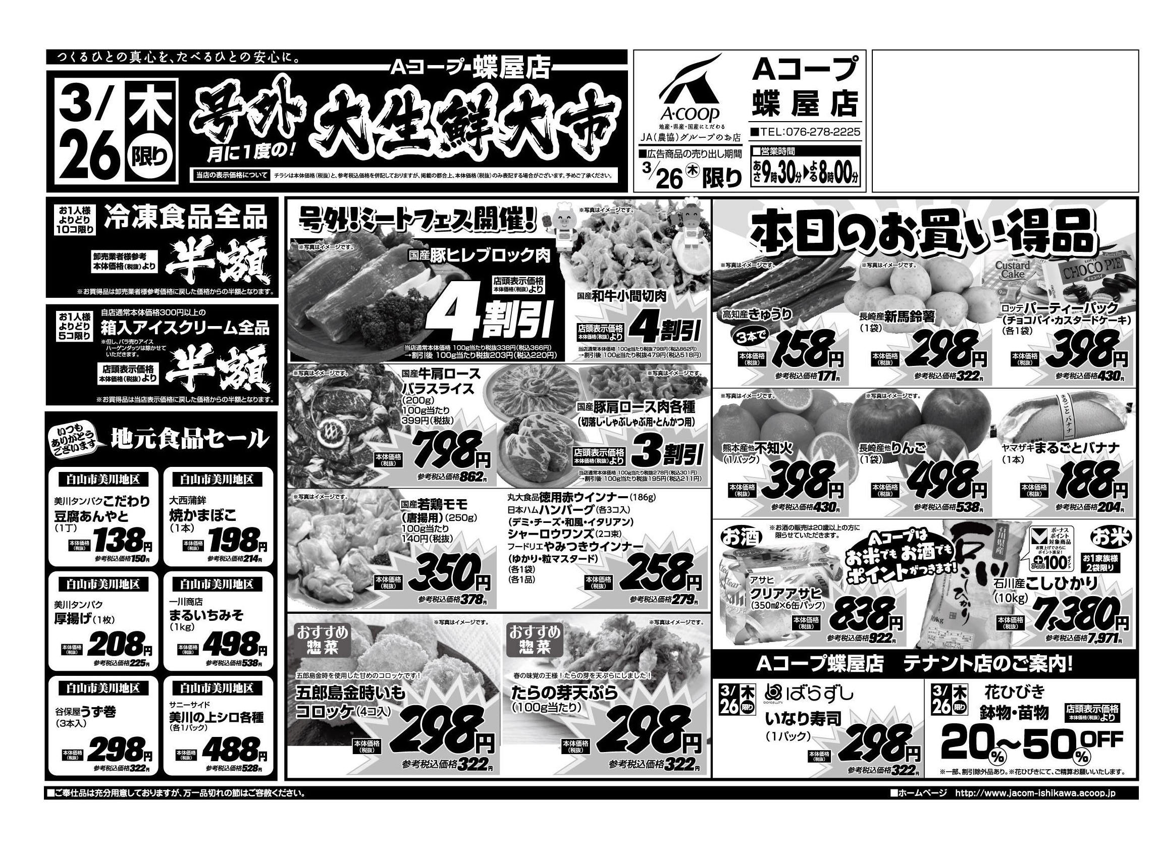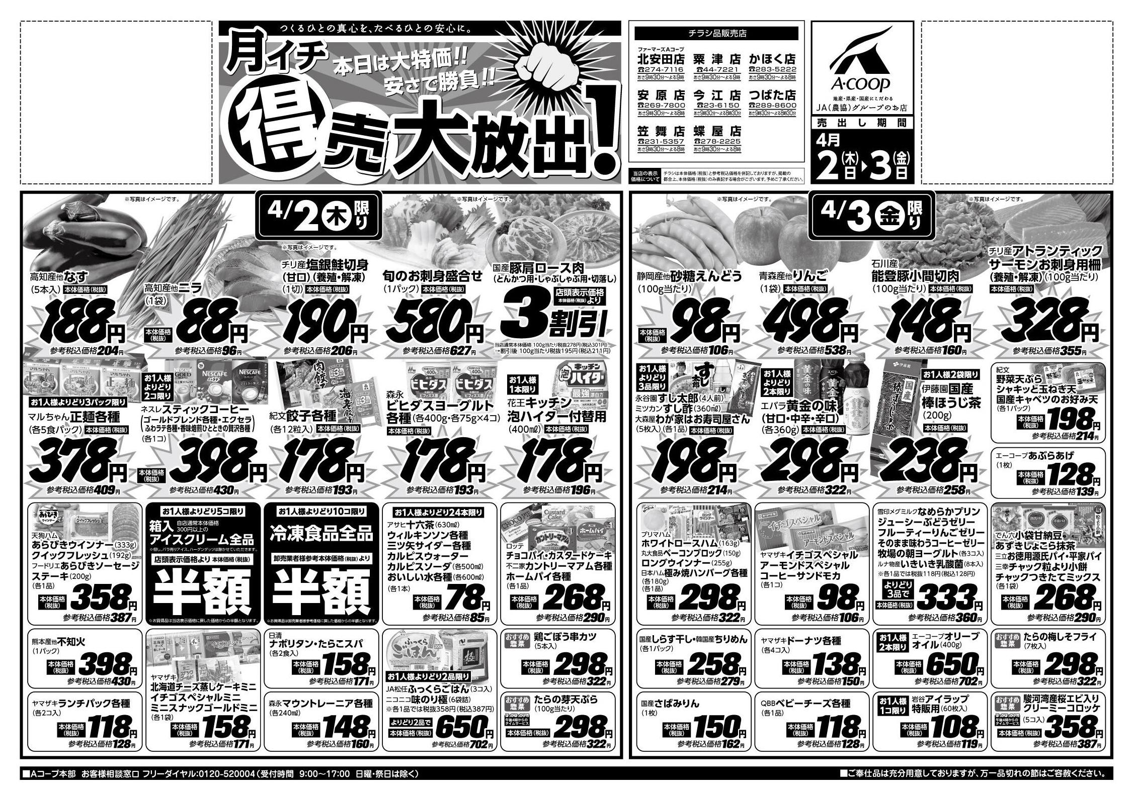 Aコープ蝶屋店今週のチラシ(2026年3月30日〜4月5日)