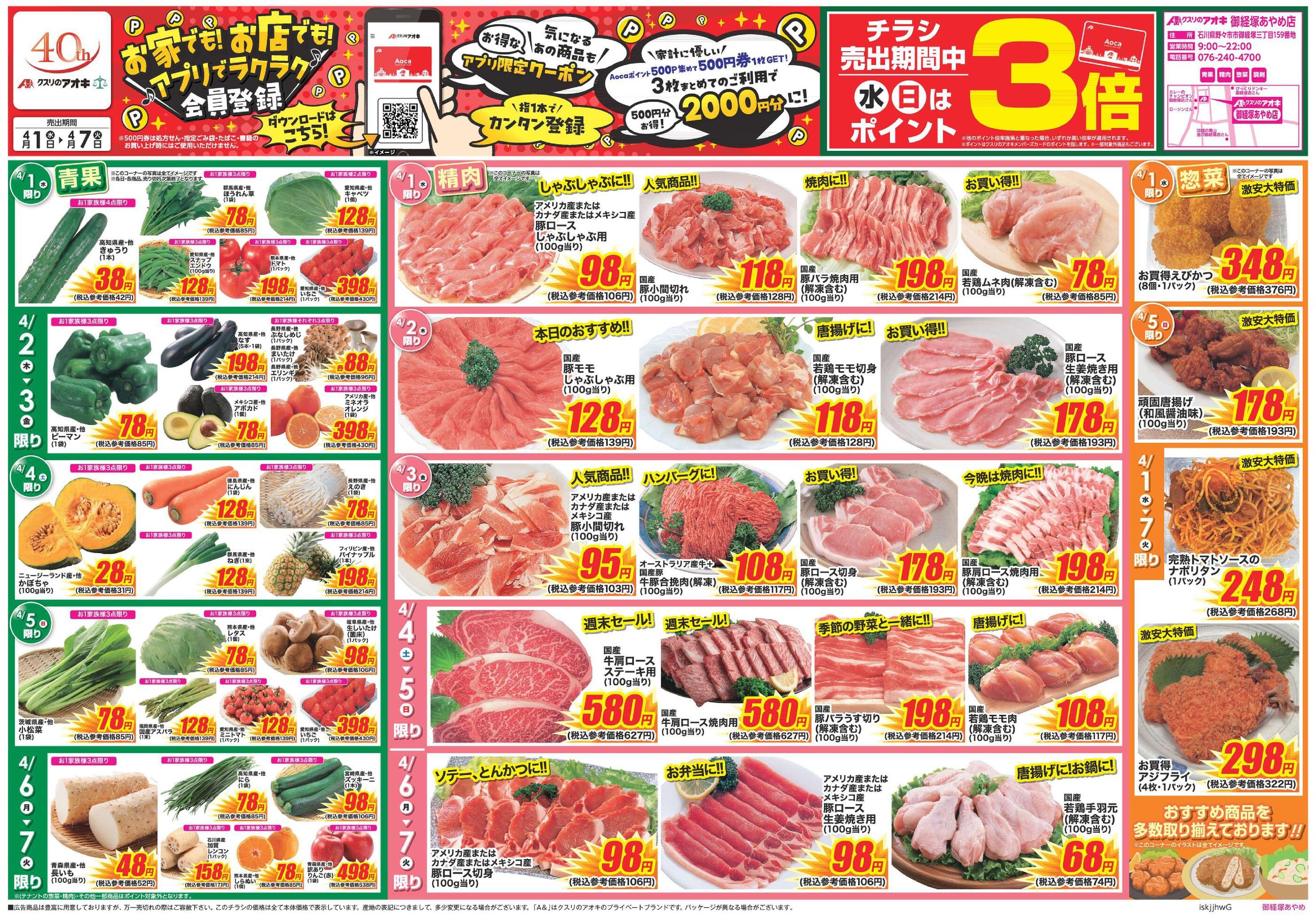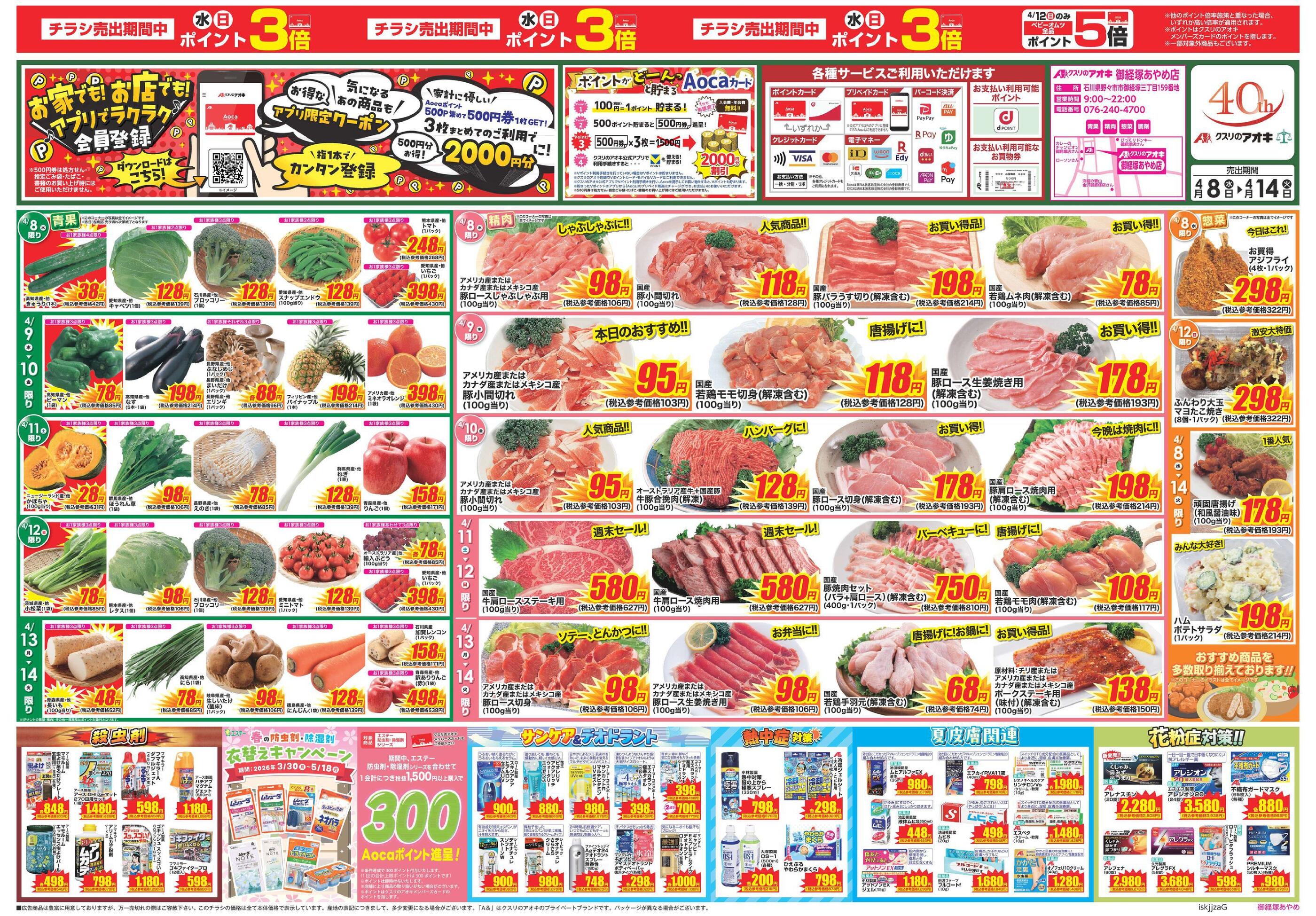 クスリのアオキ御経塚あやめ店今週のチラシ(2026年4月13日〜4月19日)