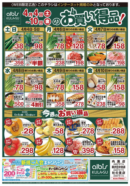 特売やセール情報など最新のチラシを掲載中。(5種類、5枚のチラシを掲載しています)