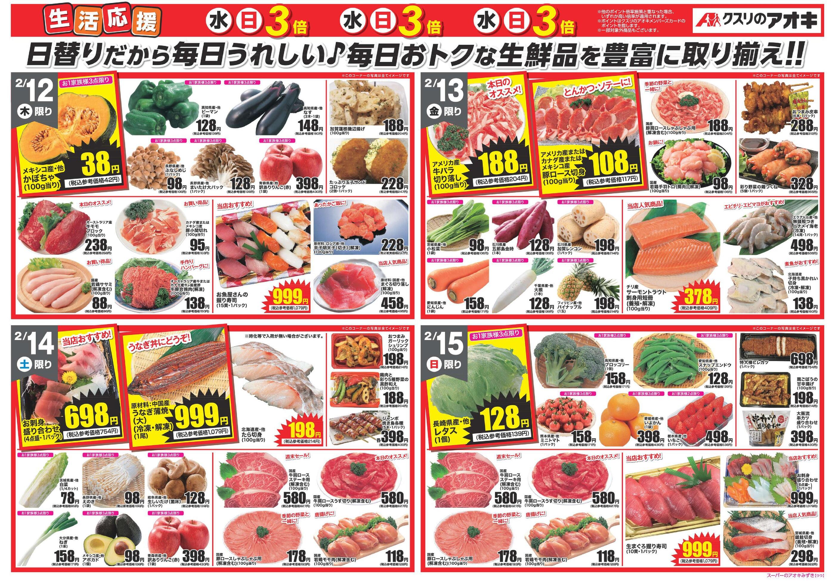 クスリのアオキスーパーのアオキみずき店今週のチラシ(2026年2月9日〜2月15日)