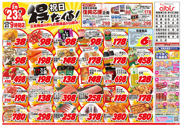※「店舗の掲載内容について」チラシガイドに掲載している情報は、独自に調査した内容及びユーザーから頂いた情報を掲載しています。お気づきの点がございましたら「お問い合わせ」よりご連絡ください。また店舗の営業状況、商品に関するお問い合わせは直接店舗事業者にご確認ください。