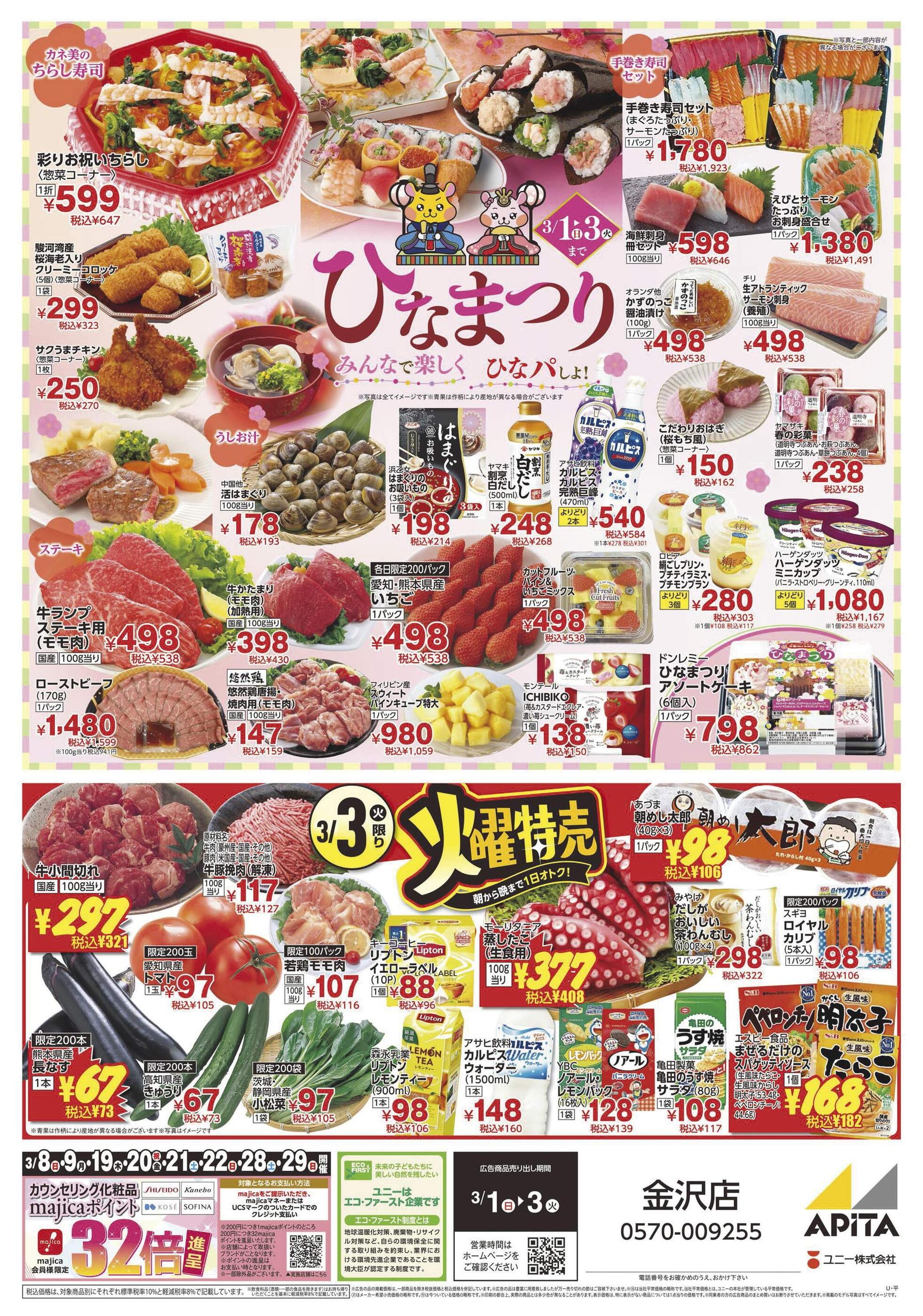 アピタ金沢店今週のチラシ(2026年3月2日〜3月8日)