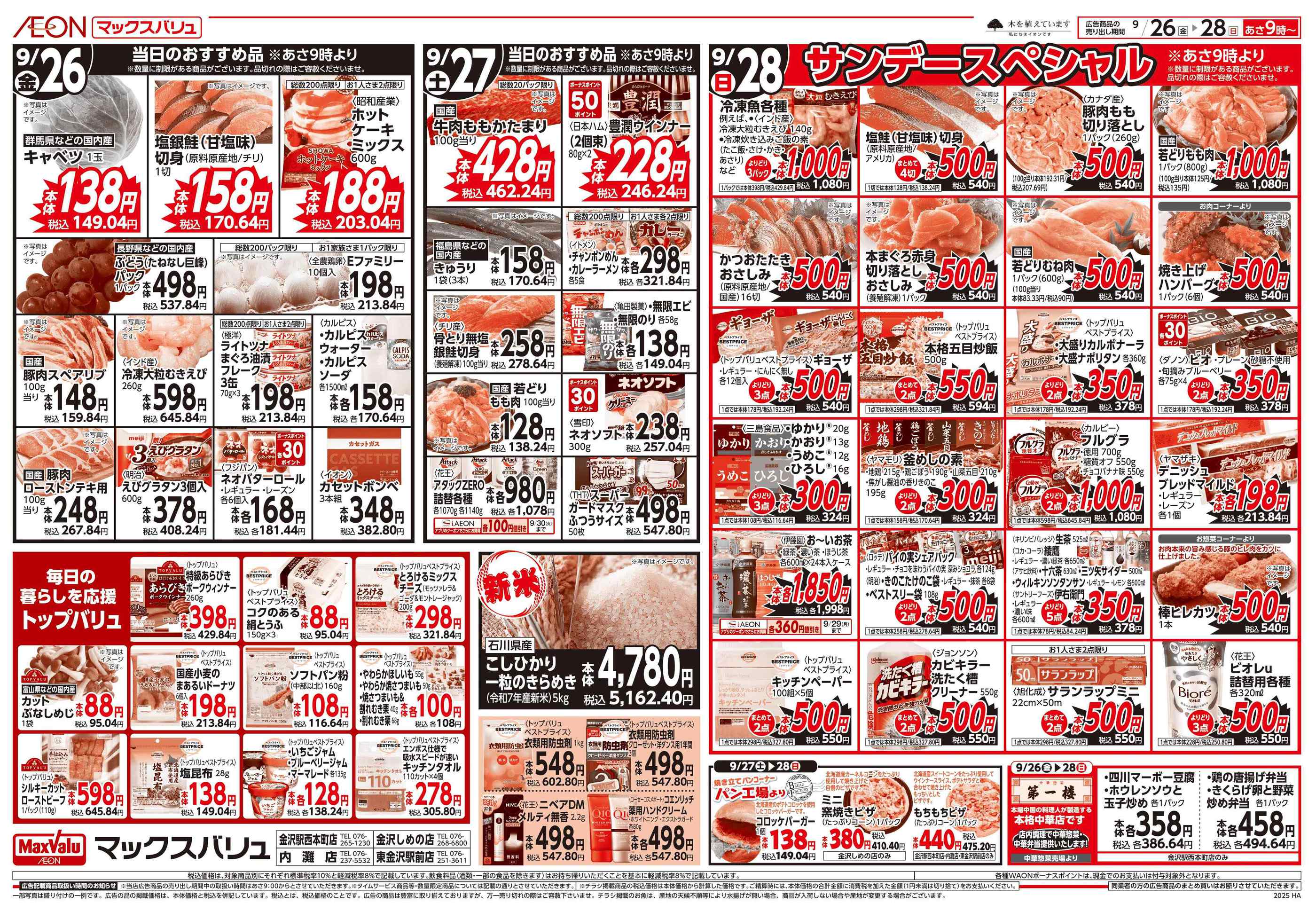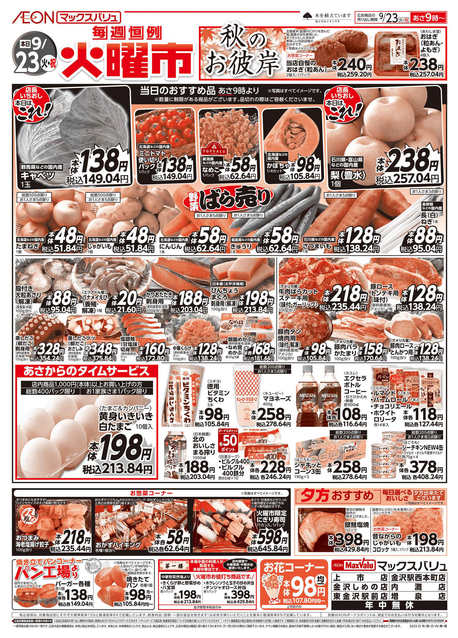 マックスバリュ金沢しめの店今週のチラシ(2025年9月29日〜10月5日)