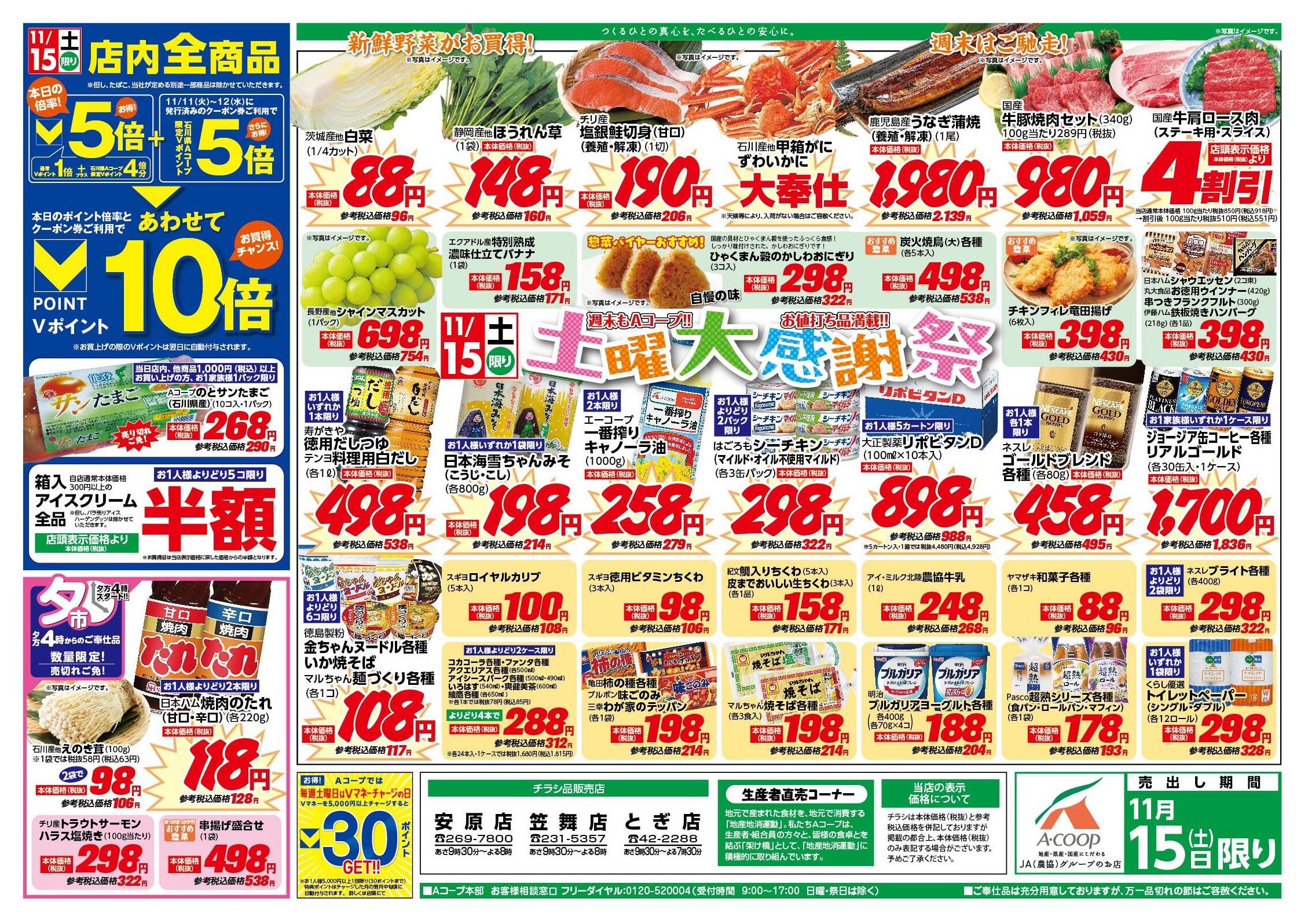 Aコープ笠舞店2025-11-15更新