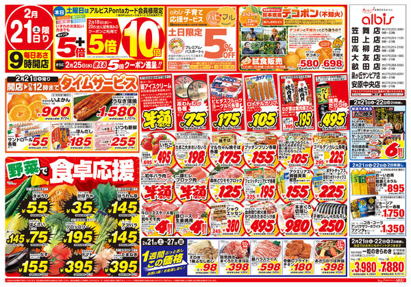 ※「店舗の掲載内容について」チラシガイドに掲載している情報は、独自に調査した内容及びユーザーから頂いた情報を掲載しています。お気づきの点がございましたら「お問い合わせ」よりご連絡ください。また店舗の営業状況、商品に関するお問い合わせは直接店舗事業者にご確認ください。
