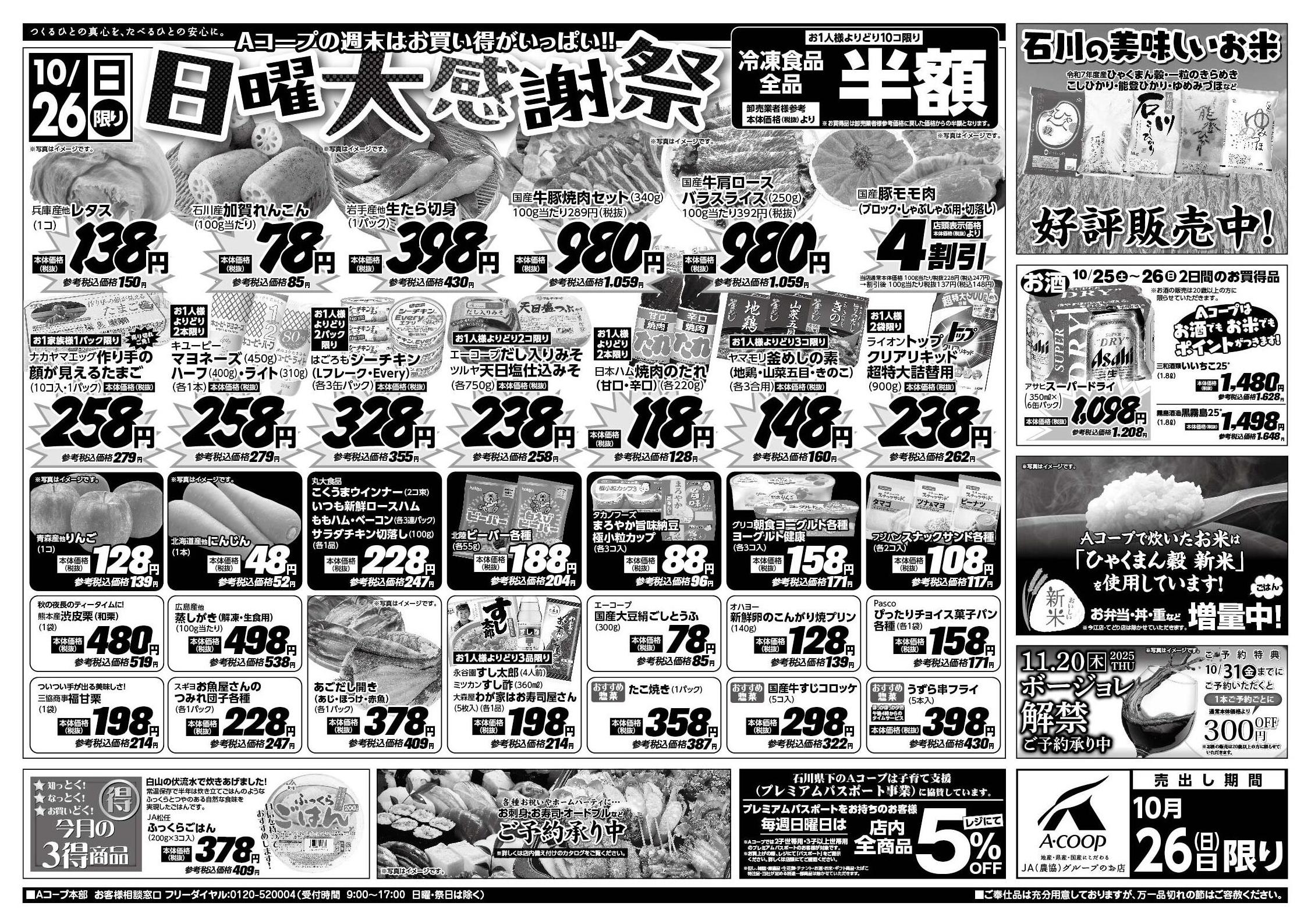 Aコープ内浦店今週のチラシ(2025年10月20日〜10月26日)