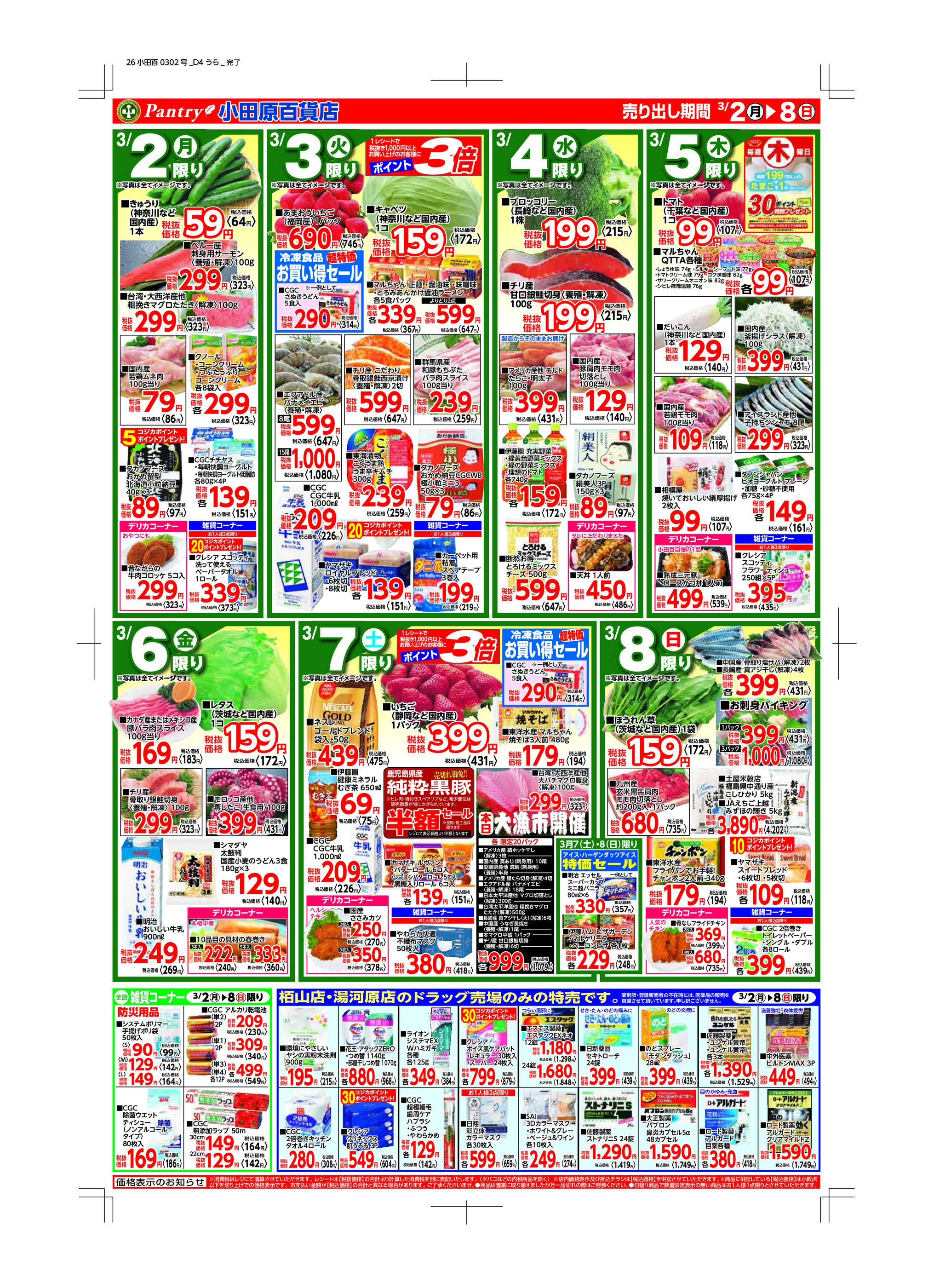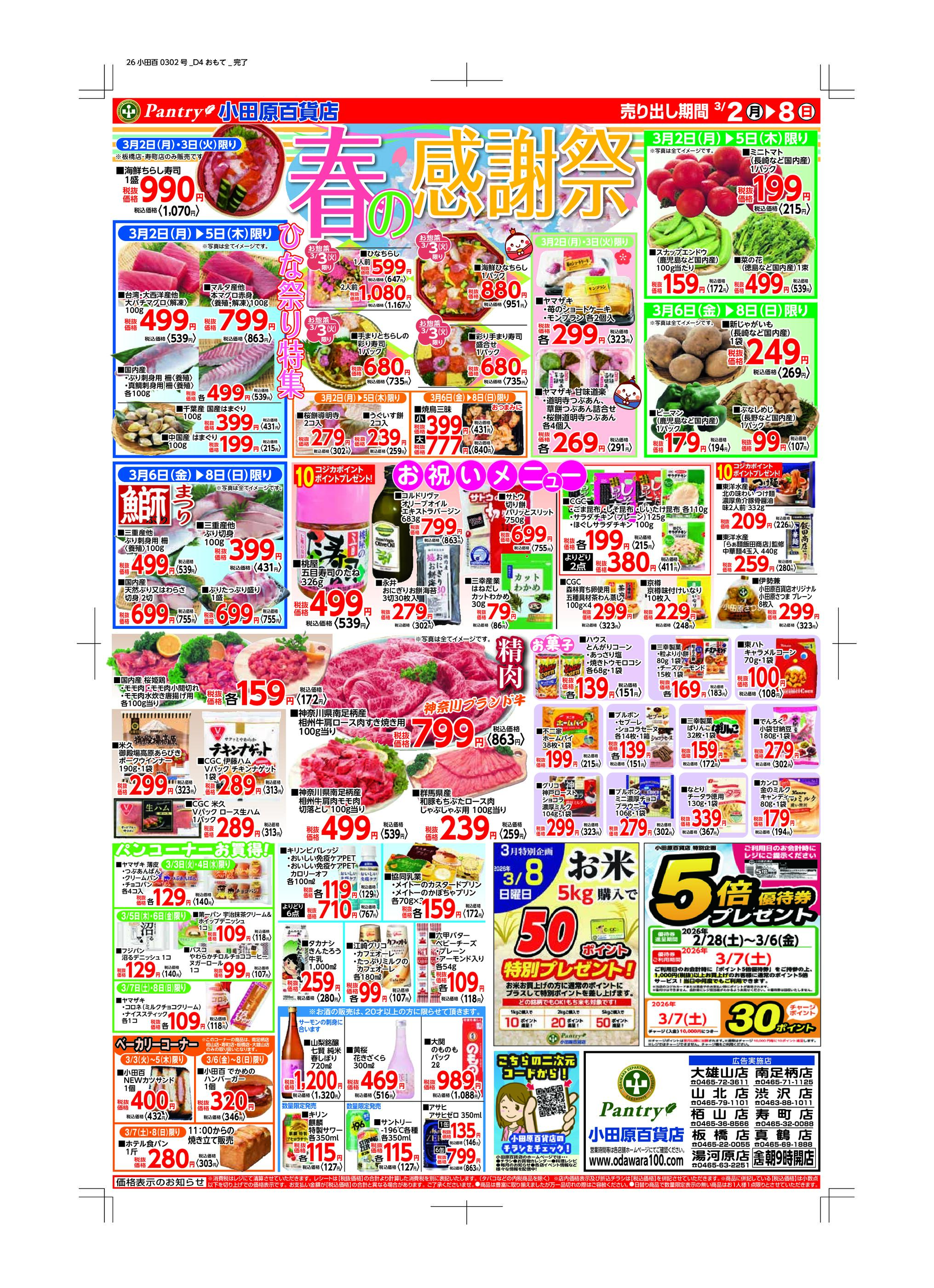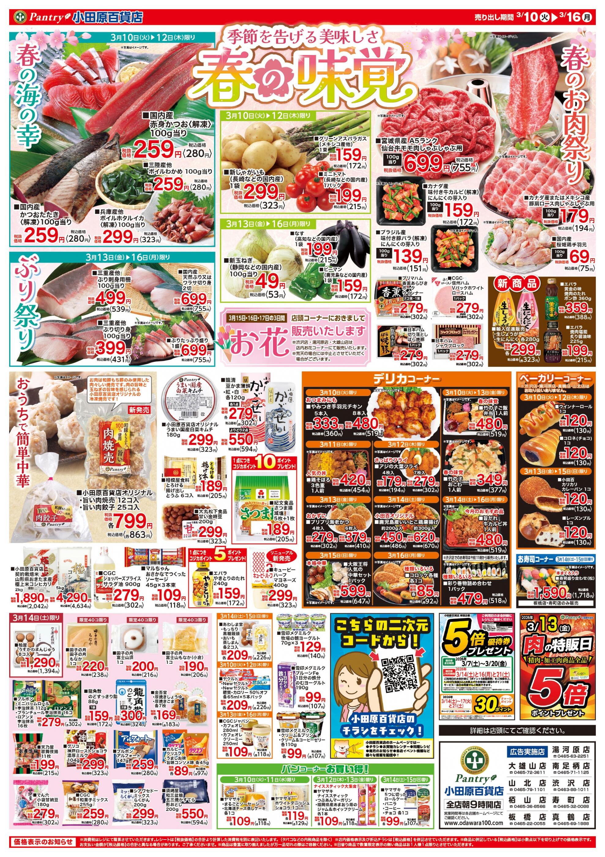 小田原百貨店大雄山店今週のチラシ(2026年3月9日〜3月15日)